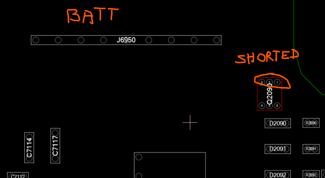 So I wanted to make sure that battery connector J6950 was good so I added more solder to the connector pads. After that Laptop won't turn on at all.
