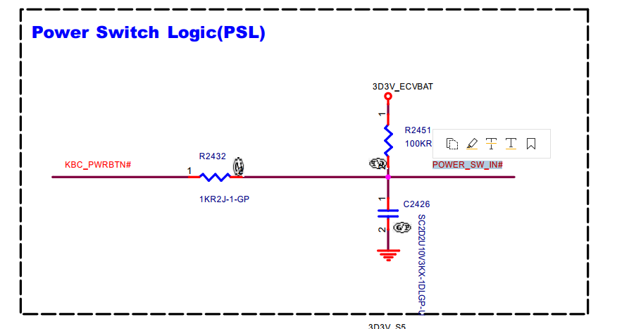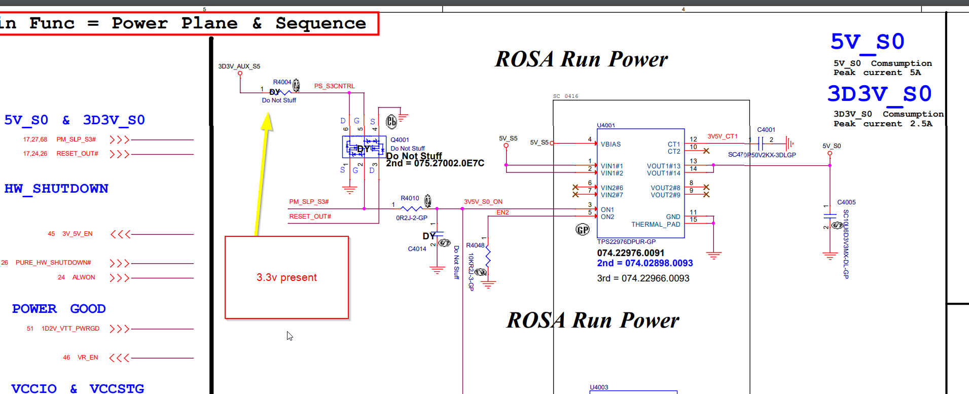 The board has 19v and 5v S5 rails up but no 3.3v. Please tell me if there's an easier way, but my method of checking if 3.3vS5 is up, is to check voltage at pin 8 of the BIOS chip. I am looking at the schematic and see pin 8 of the BIOS chip is 3D3V_SPIVCC but I'm having trouble tracing in the schematic WHERE 3D3V_SPIVCC comes from.