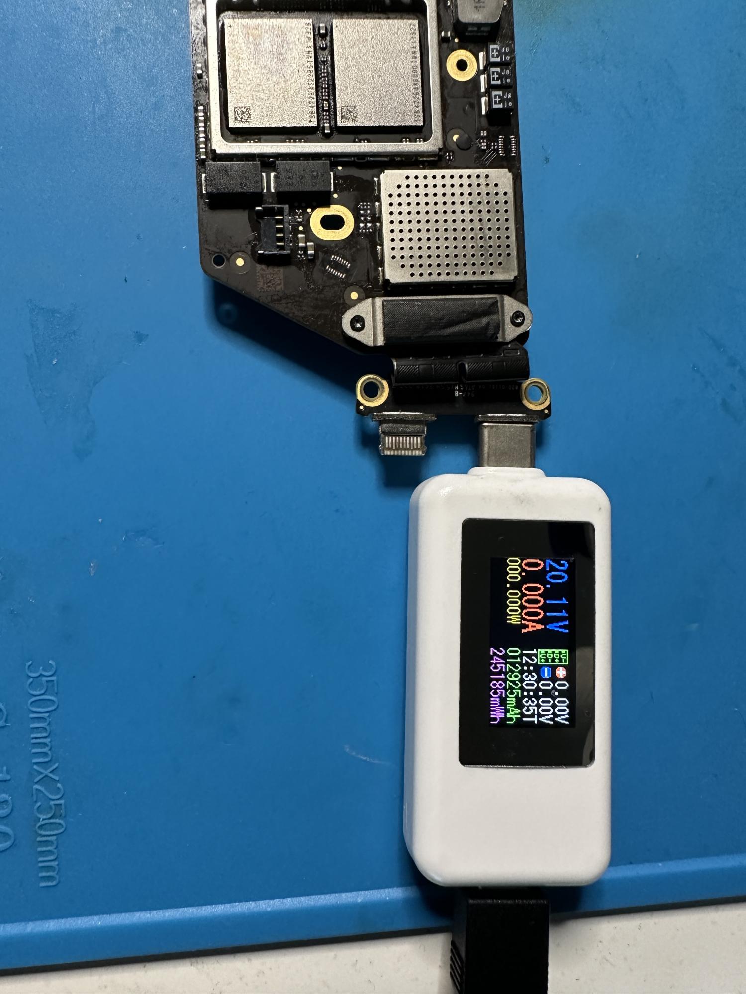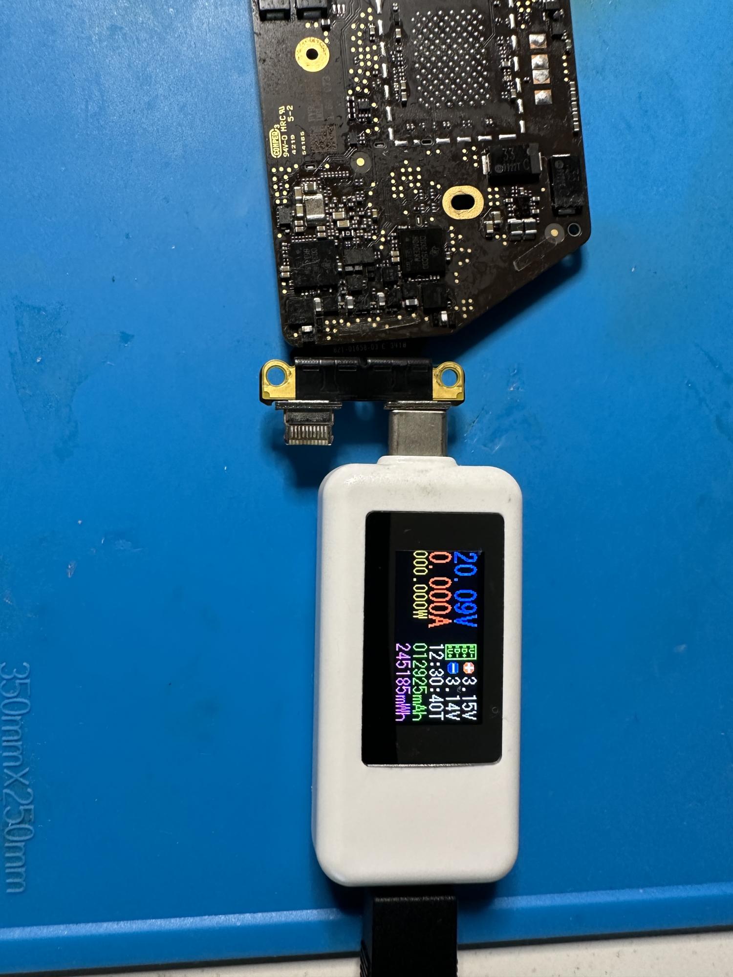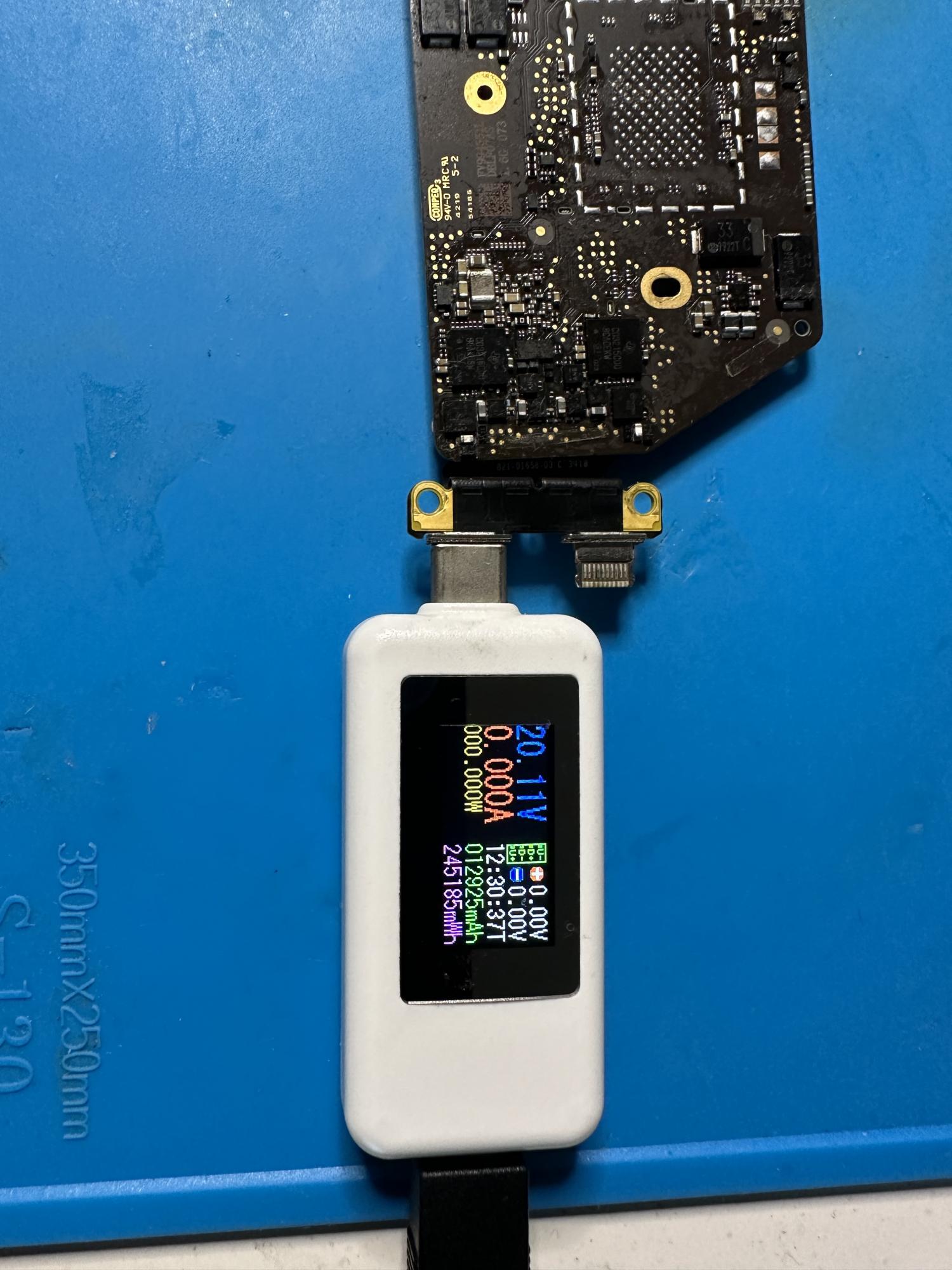it's stuck on 5v (0.03 - 0.4a) - I've replaced 2x CD3215 for know good ones. It's still on 5V only and when I connect it to another MacBook it's just connecting and disconnecting.