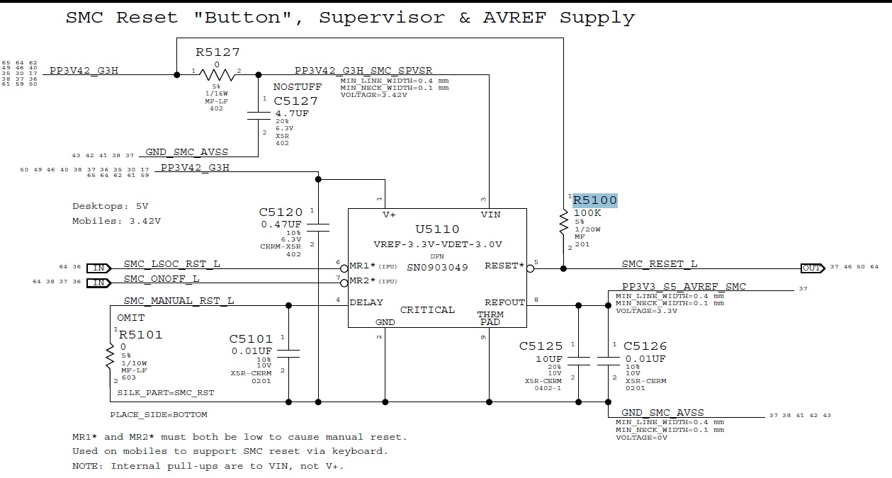 NO Green Light neither Orange light. Due to fungus the R5100 was bad. SMC_RESET_L pin is okay of the resistor but the PP3V42_G3H track gone. So I have to connect by jumper wire with the 100K.