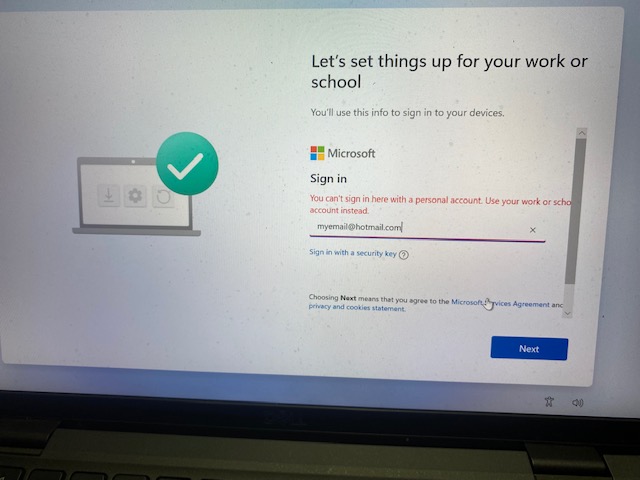 i have got some laptops which i buy from a recycling firm, some are water damage some have issues, so i managed to fix this dell latitude 7420 but my issue is i want to install windows 11 when i connect to internet it asks me for email work group or organization, normally other laptops don't ask me so i am guessing this is going to that work group as soon as i connect to internet, i have tried many serial numbers and many other bios but this still can not work, i can setup windows by saying i don't have internet this way but if i sell i don't want no come backs, any idea anyone can help, i have included some pictures here