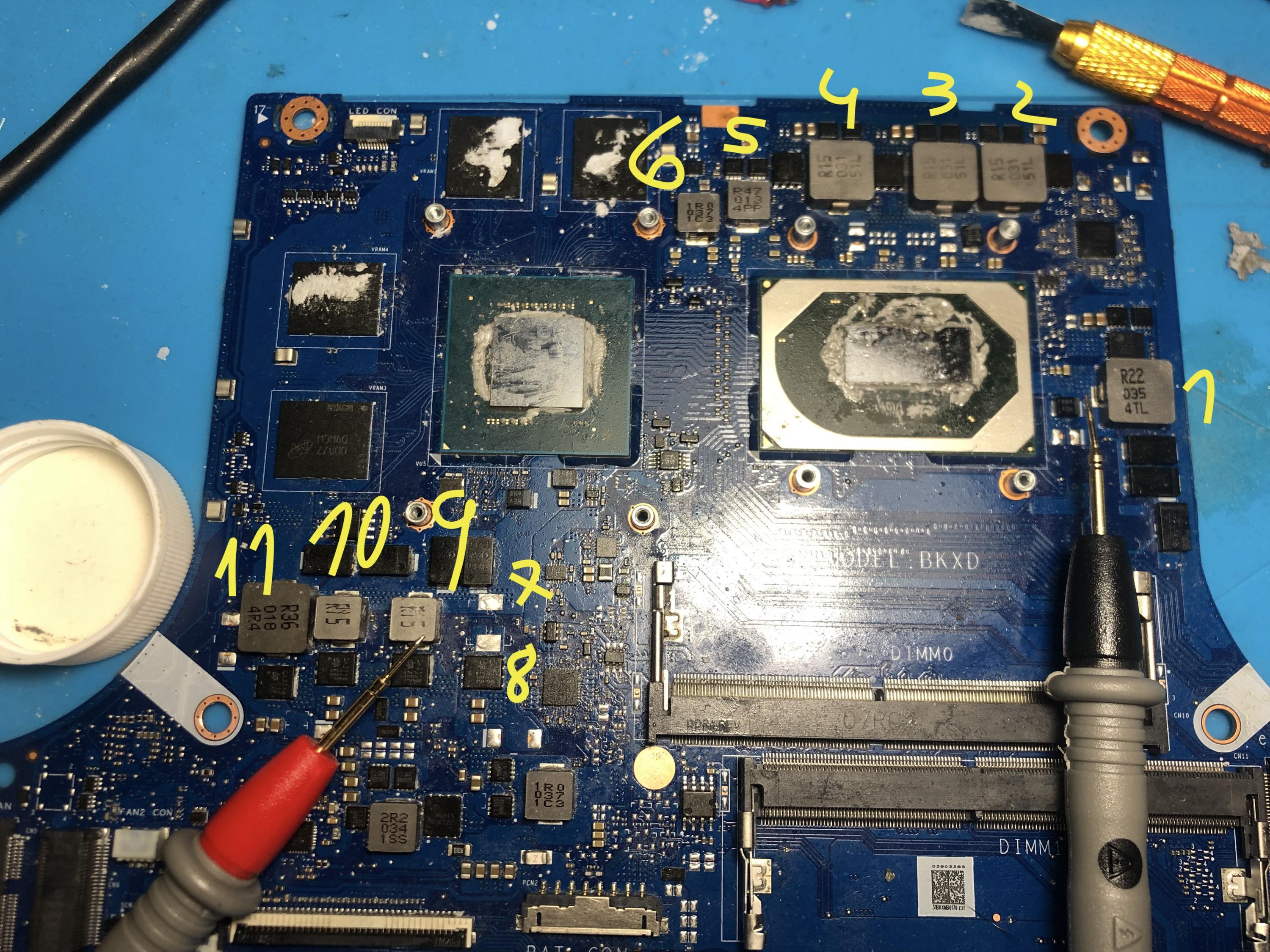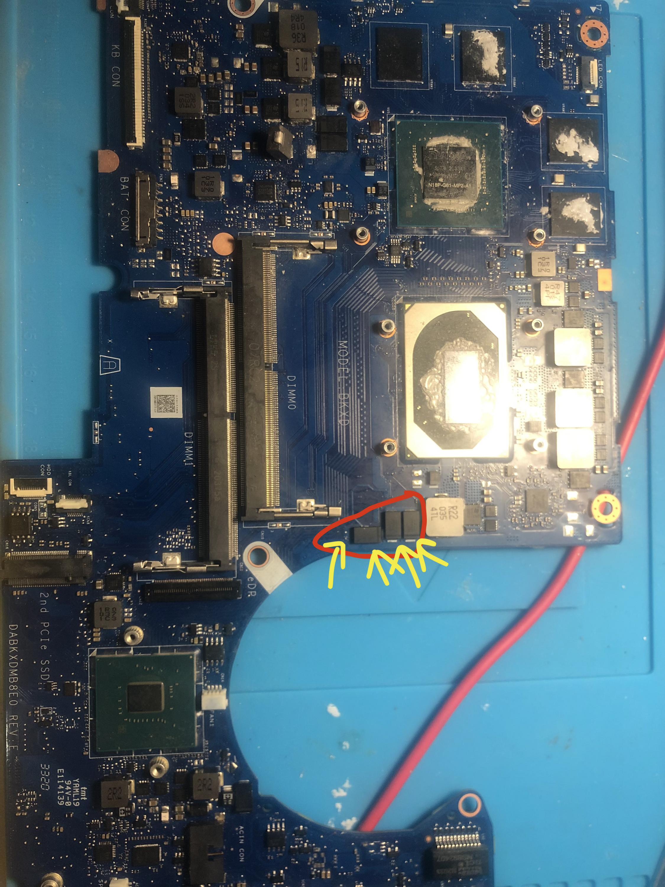 and now talking about the tantalum polymer capacitor, those that are beside cpu receives 20v and those beside gpu 0v and this was after resolve a short-circuit before those beside cpu was receiving 0v