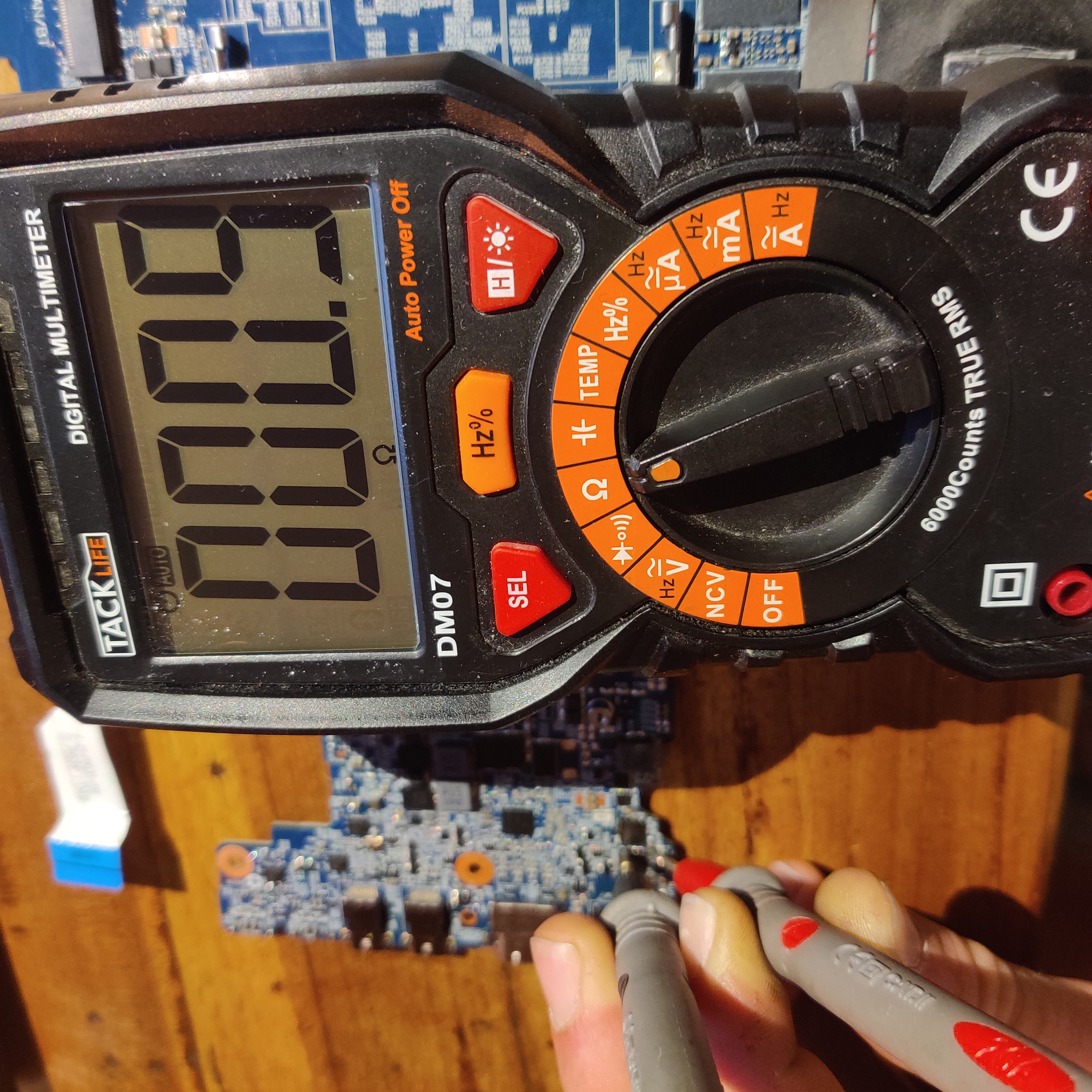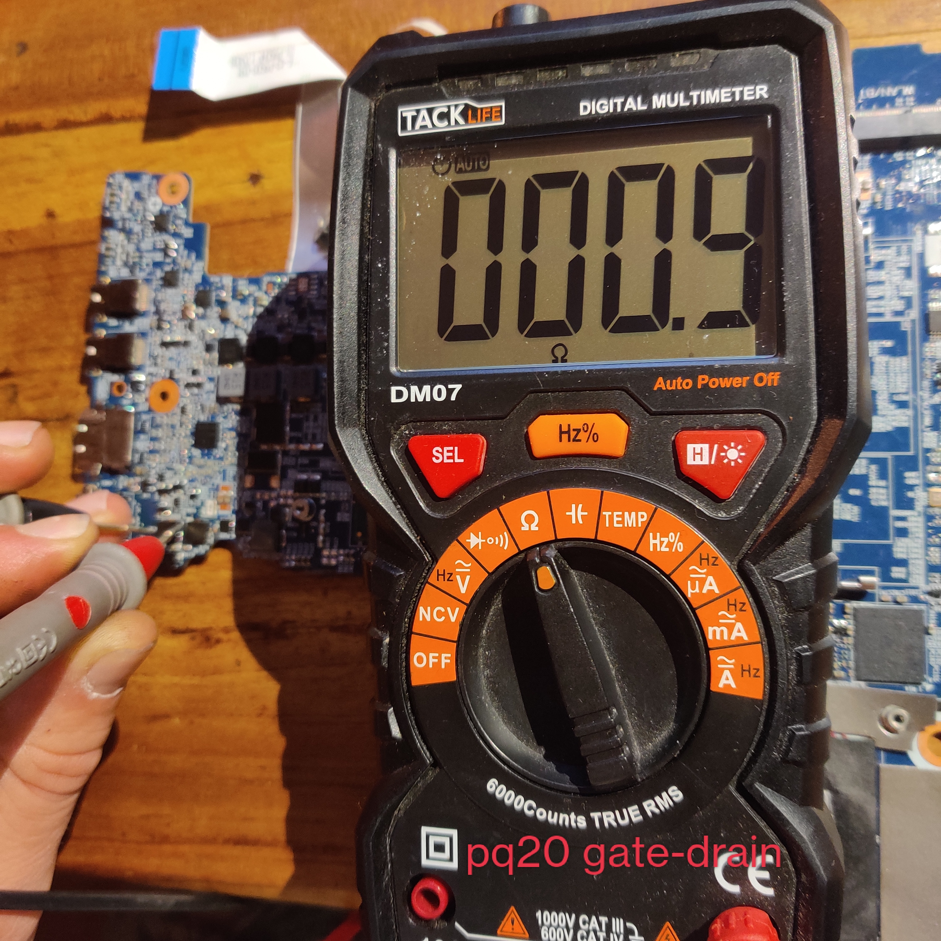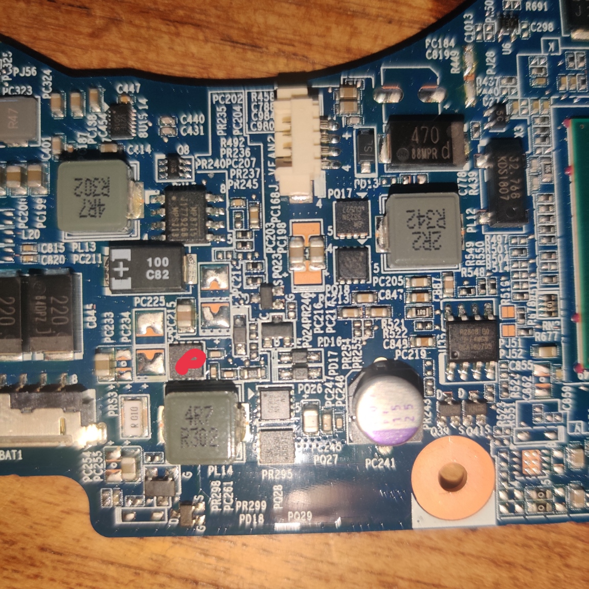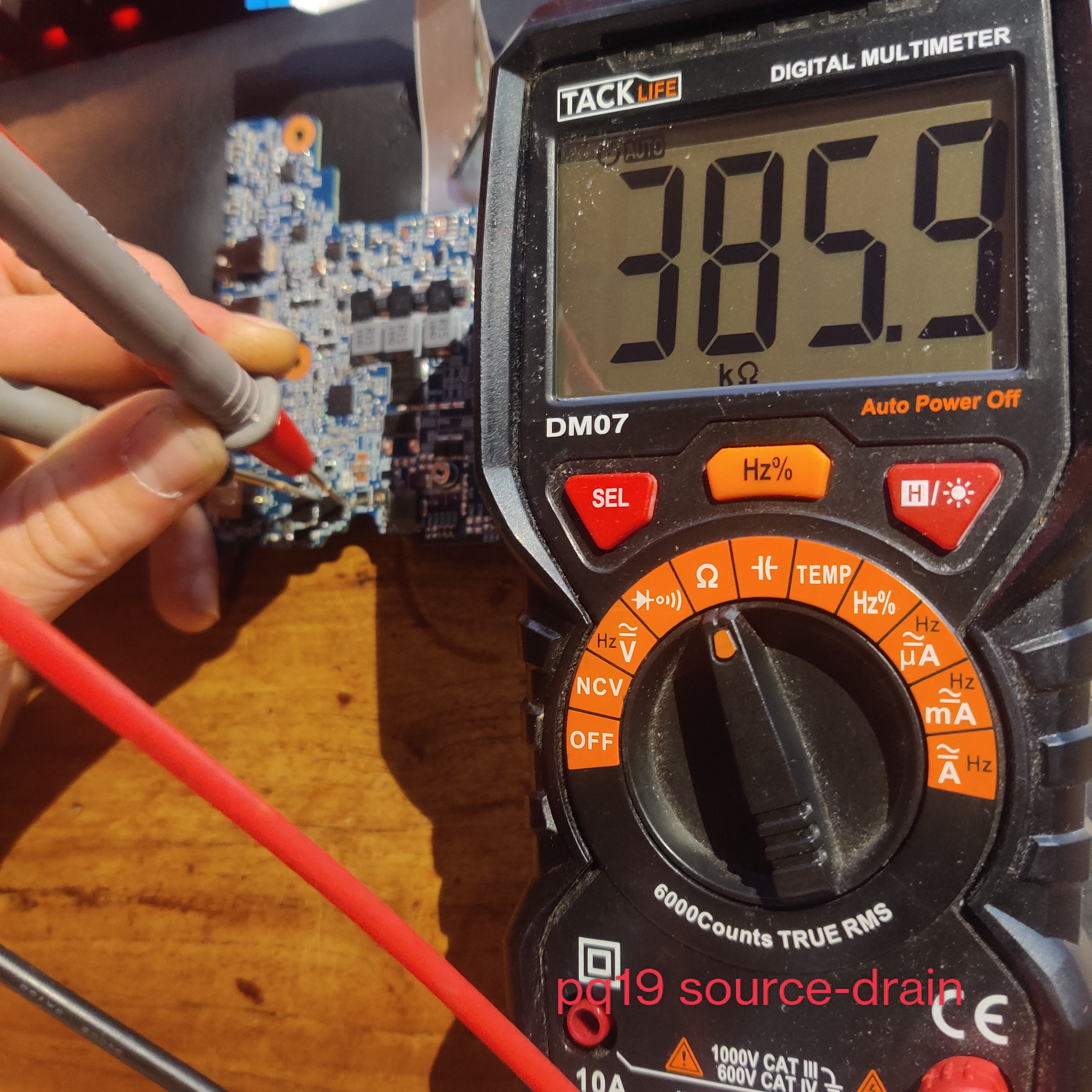 Since I'm new to motherboard repairs (I did a few basic MOSFET replacements and capacitors that were obviously broken) Fault finding and identifying which components might be broken is quite difficult jet. I took the motherboard out of the laptop and started measuring this is what I found so far: