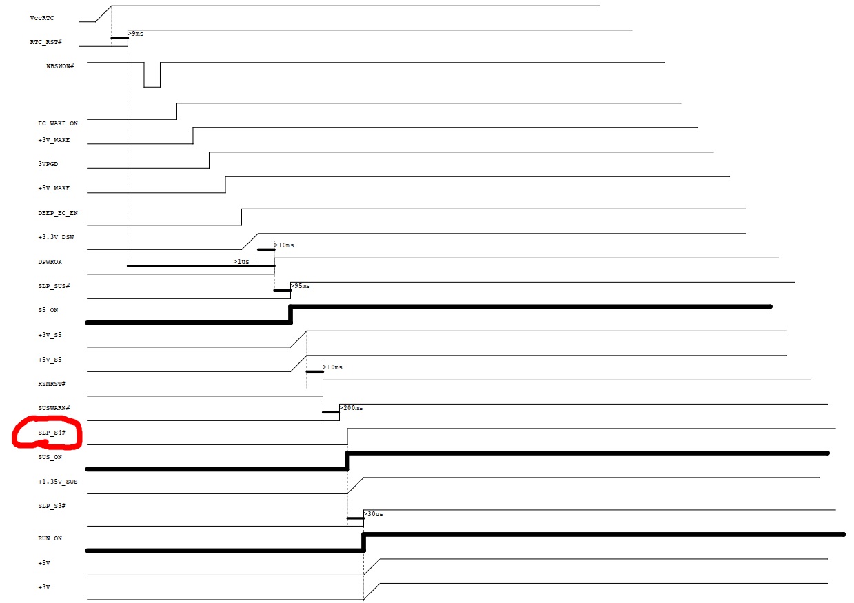 i followed this Timing chart and checked all Signals. I noticed that up to SLP_S4#, they are all correct and durable.