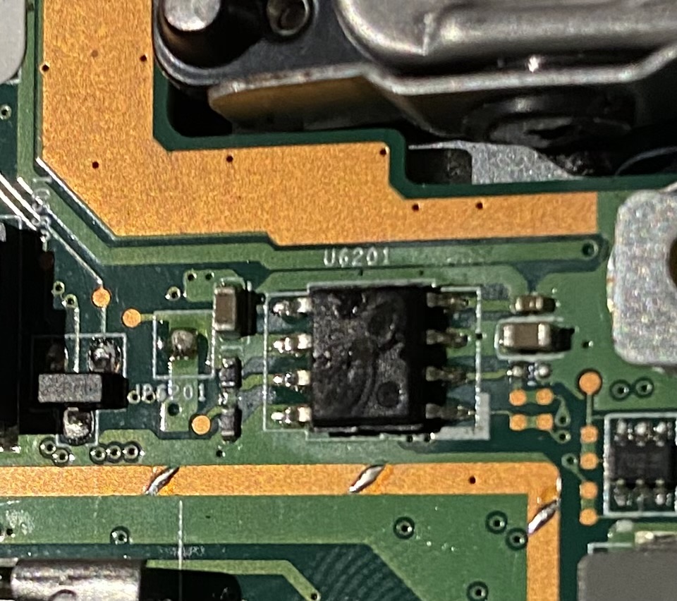 I was hoping someone can tell me more about this component and if I can still repair this. Because I was looking for the data sheet and all I can find was a 6 pin U6201, the one on the board has 8 pins. Attached here is the burnt part