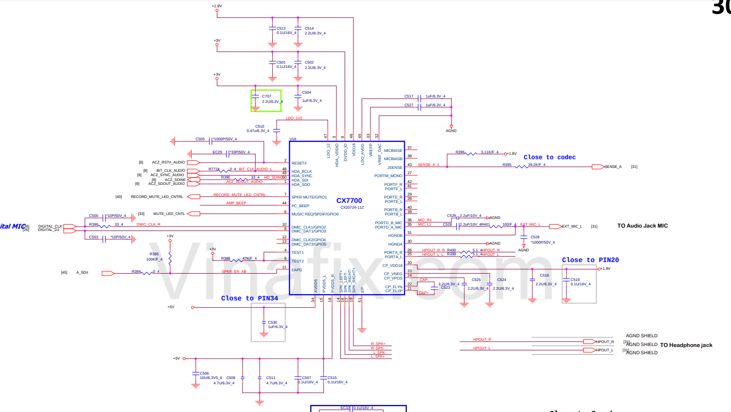 I measured all the supply voltages around the chip and they all seem ok. I used a schematic of CX7750, since thats all I could find. (see attachement)