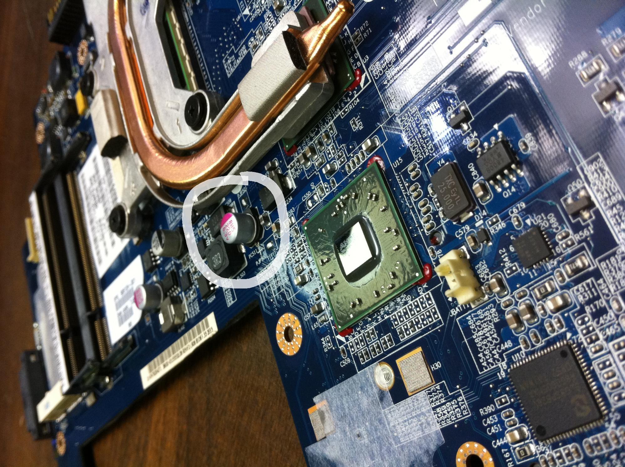 I noticed the solid state cap seems to sit on some sort of tiny base. A little black square. I'm not sure if Solid State Capacitors just push into that base or do I need to unsolder like a regular electrolytic cap? Any input will be greatly appreciated. By the way this laptop is a HP DV7 series with AMD video chip. A lot of the DV6, DV7 and DV9 series laptops have bad video chips from the factory but I have never noticed until today that any had a swollen solid state cap. I have fixed many desktop motherboards that appeared to be completely dead by changing capacitors and it stands to reason that I may be able to do the same with laptop motherboards and their solid state capacitors. Feedback?