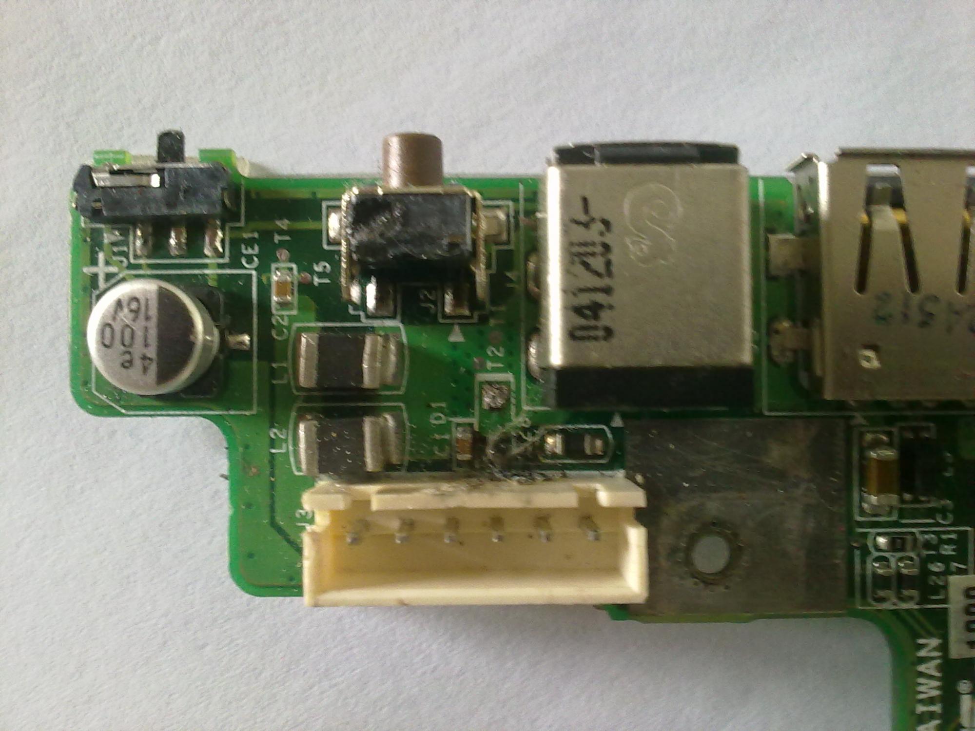 A buddy got his lap top wet and hooked it up to the power source and the small board where the inlet plug is connected with the sound card started smoking!!