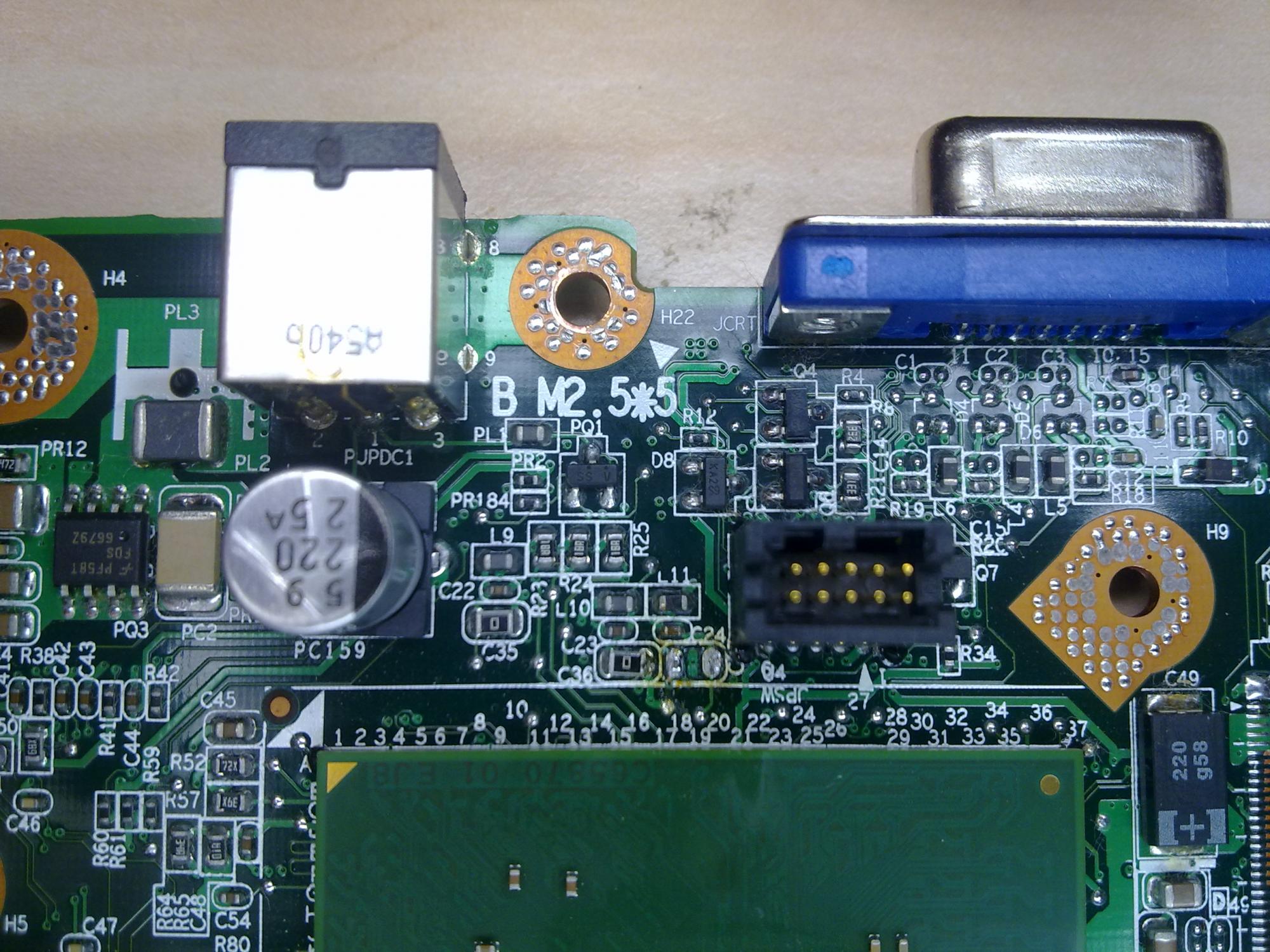On the faulty board the 19v drops to 7v right at pins 2 & 3 of the connector. So, I removed PQ3, PC2 and PL2 in turn, and only when I removed PL2 did the supply return to 19v (at this point the supply is effectively disconnected from the rest of the circuit). The two resistors PR11 and PR13 measure the correct values in circuit - they're tiny so can't easily be removed.