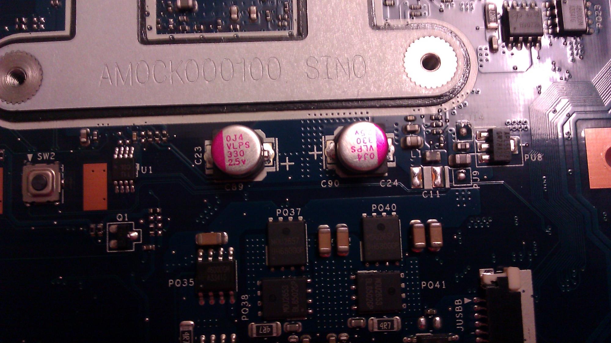 Another thread on this site suggests replacing a big cap Nec/tokin OE907 is responsible and many people have repaired this problem by replacing the chip itself with the same one or 4x tantalum smd caps.