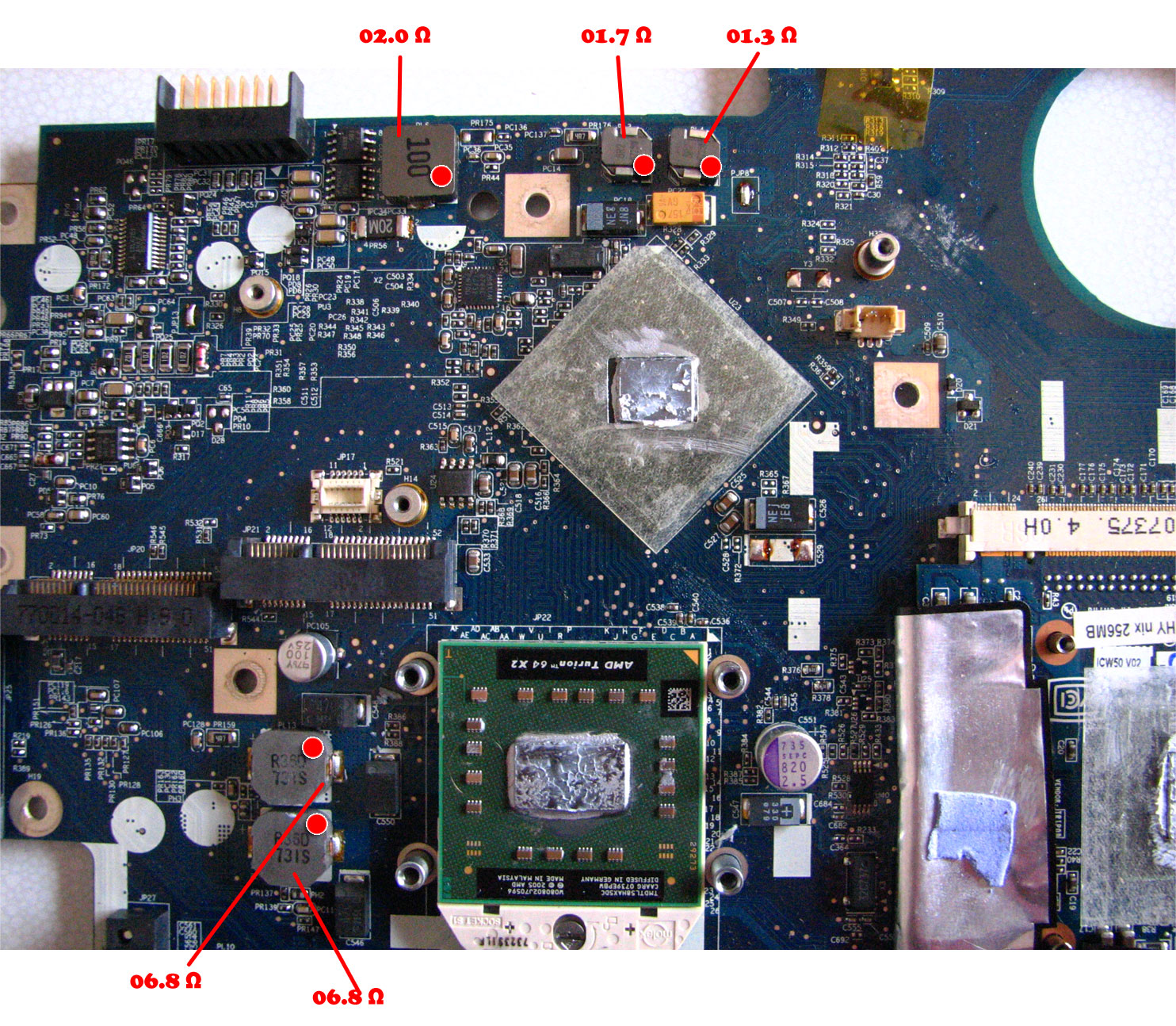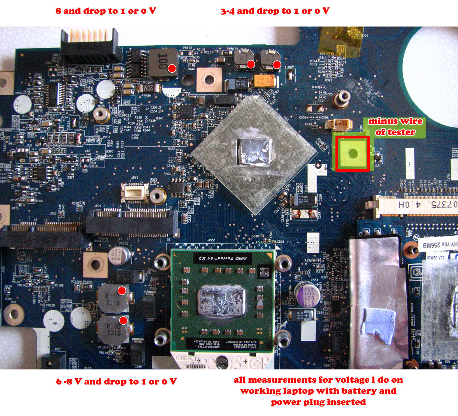 But I got another acer aspire 5520 with graphic on card, but no show any picture, I try with another graphivc card and still no changes. So I measure coils on similar spots like on 7520 and get this voltages.