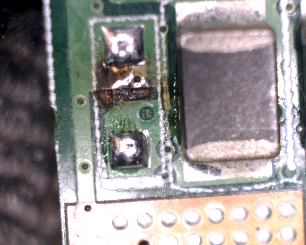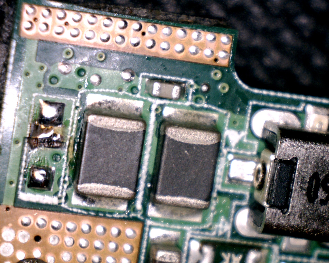 So, I have this Asus Eee PC1005HA that's not powering on, not getting anything from the charger being plugged in all of that good stuff! I cracked the little guy open and pulled out the board and found a crusty little ____________ right near the DC input. I cleaned up where the ______________ once was and I have posted a picture below.