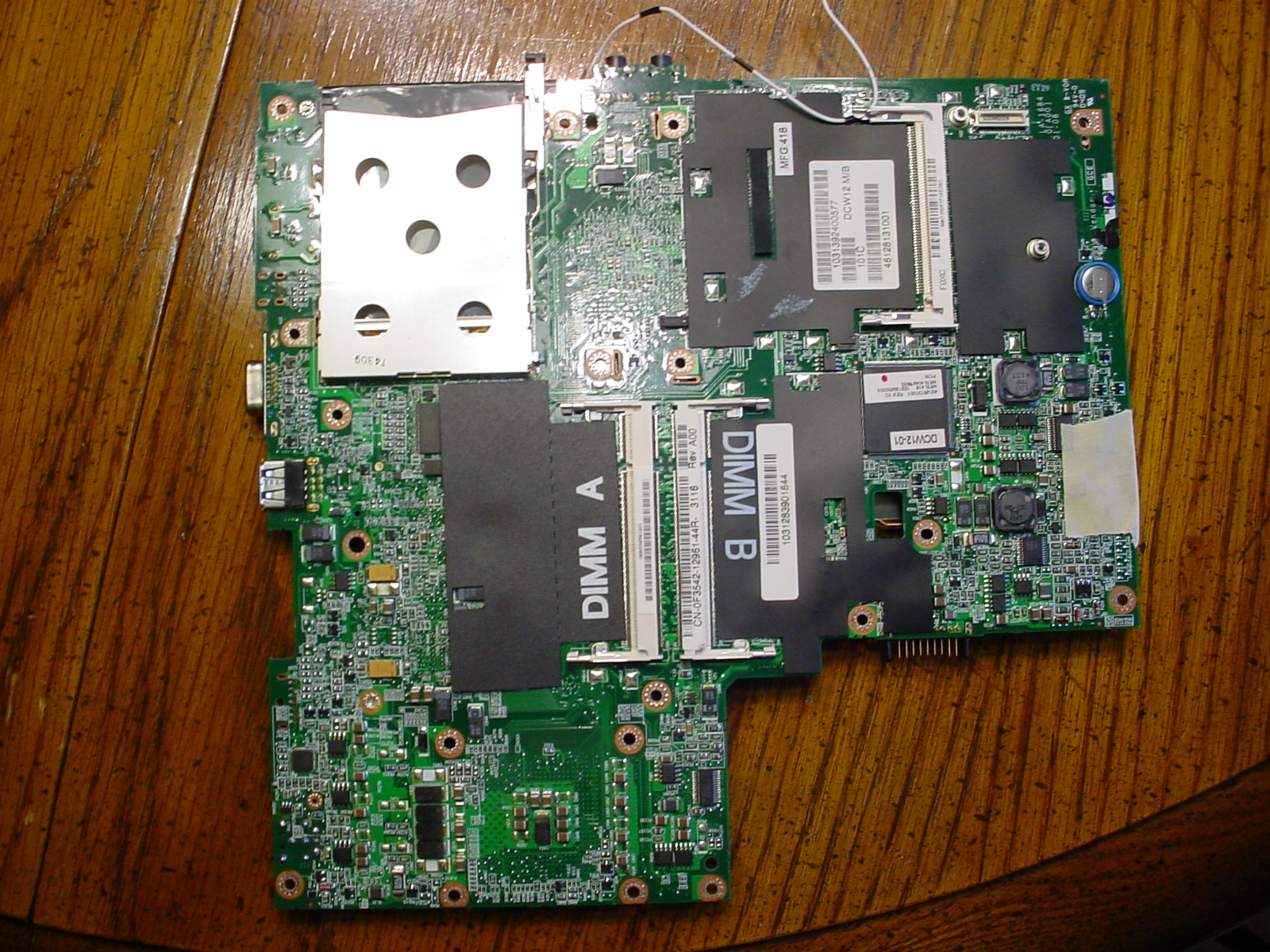 OK, got my motherboard in today. Put my old CPU, hard drive, and memory sticks on it, connected the cooler fan and start button. With just power adapter connected, I hit the start button, Battery light flashes 1 time, then nothing. With battery installed (it won't charge up), I hit start, the power and battery light flash once every 5 seconds, But the hard drive, fan, nothing seems to try to start. Should't this laptop run on the power adapter alone, without the battery even being installed?Comment