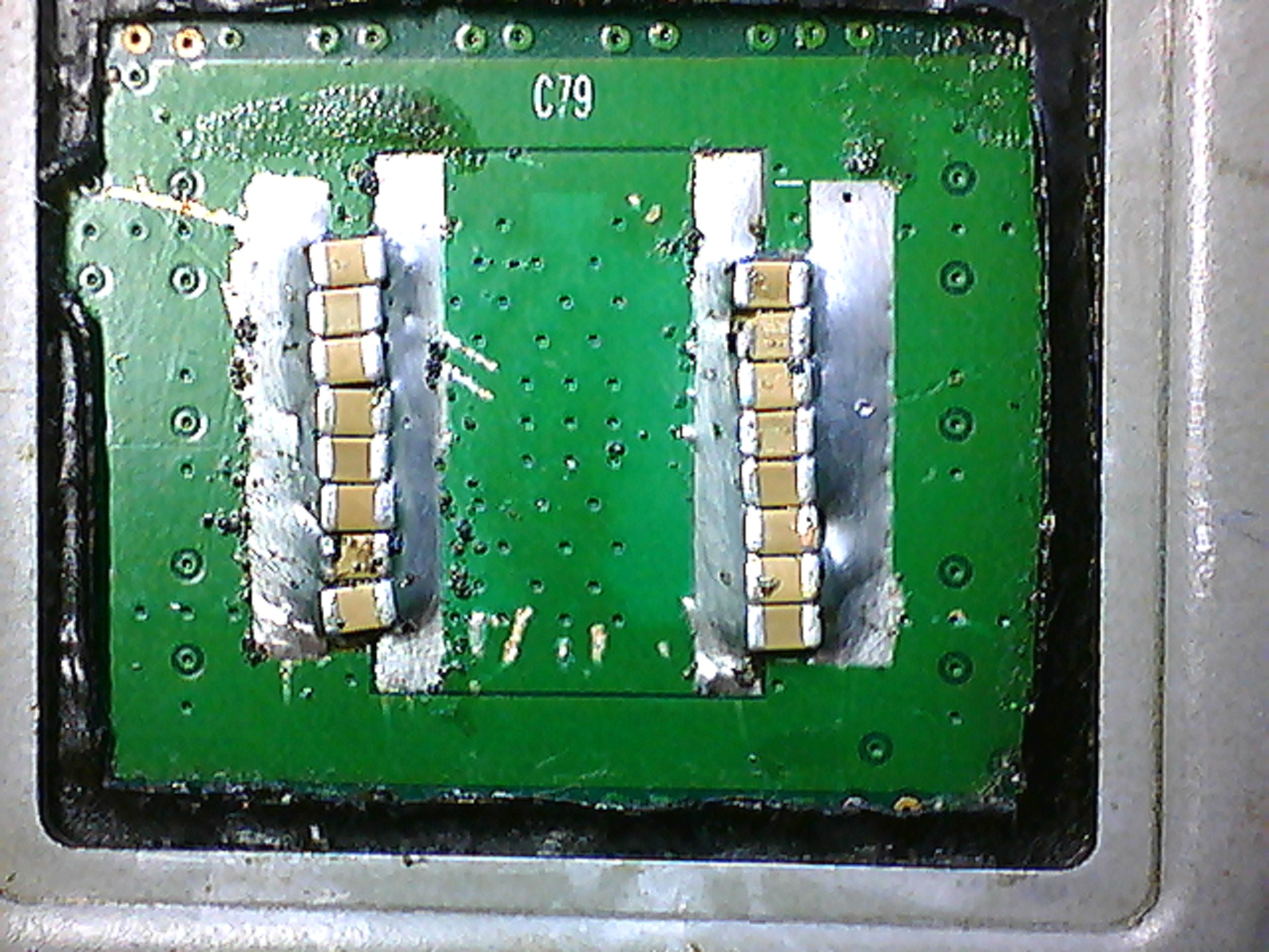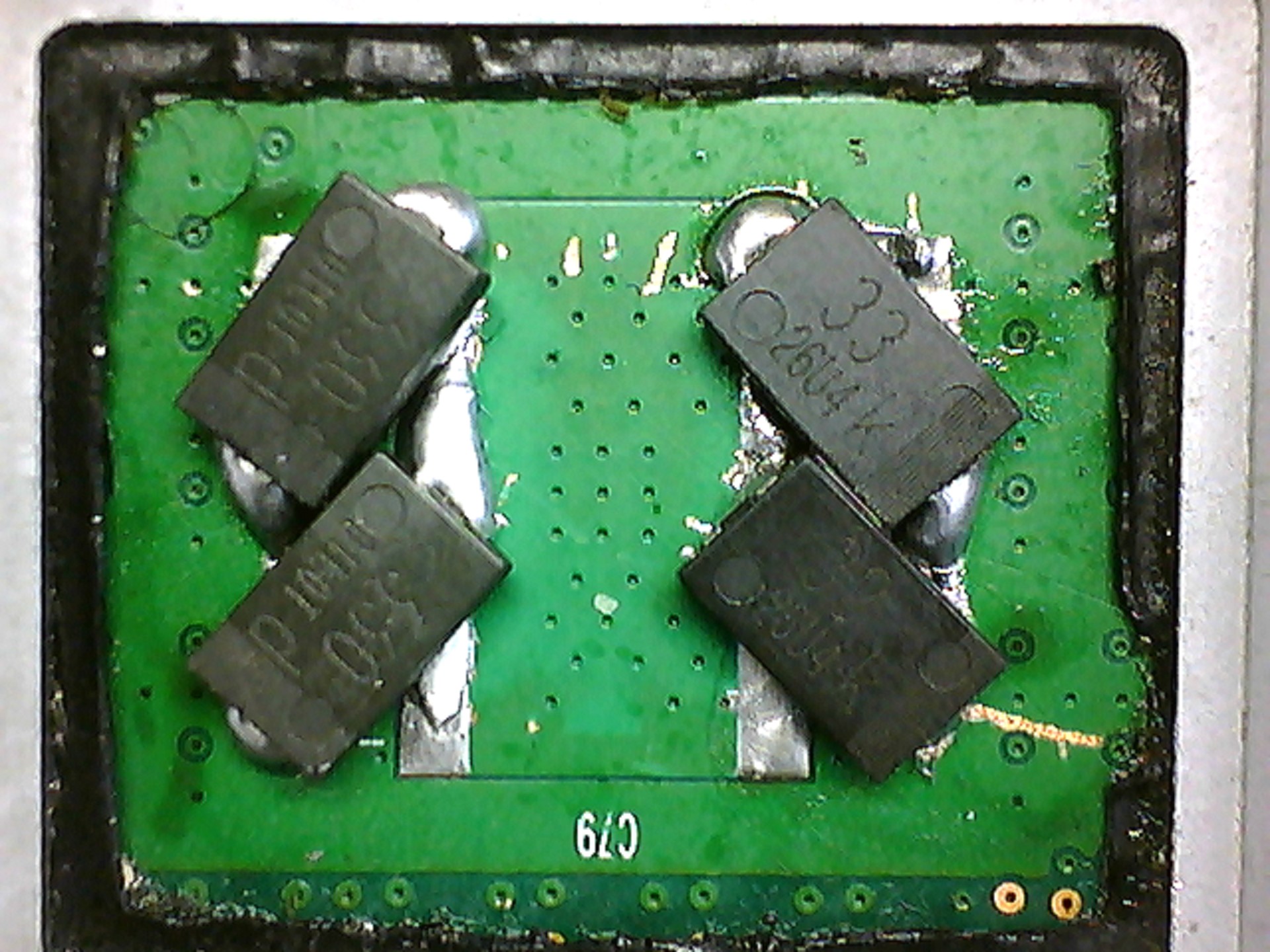 Today i met an acer 4736z (mother board is Compal la-4494p) with nec tokin capacitor. At the first it could trigger and run normal with adaptor. Insert the battery without adaptor it could trigger too but didn't run.when the laptop came to me, it was locking at win7 installation with psycedelic! screen, i reballed the i960 north bridge/gpu but it didnt work. Then i ordered a new chip and arrived yesterday. after a succesfull soldering, it worked great. i installed win7 without any problem. But then it started to restart every 6-7 minutes, i run into bios setup and change the values about cpu auto voltage or something like that to low,/save restart and its not ressetting now, but it hangs up with corrupt screen graphics showing desktop in drunk mode! (:P) the machine is toshiba a200 or 205 dont remember now today it was really busy, and also it has the cap NEC/TOKIN 0E907. any suggestions ?