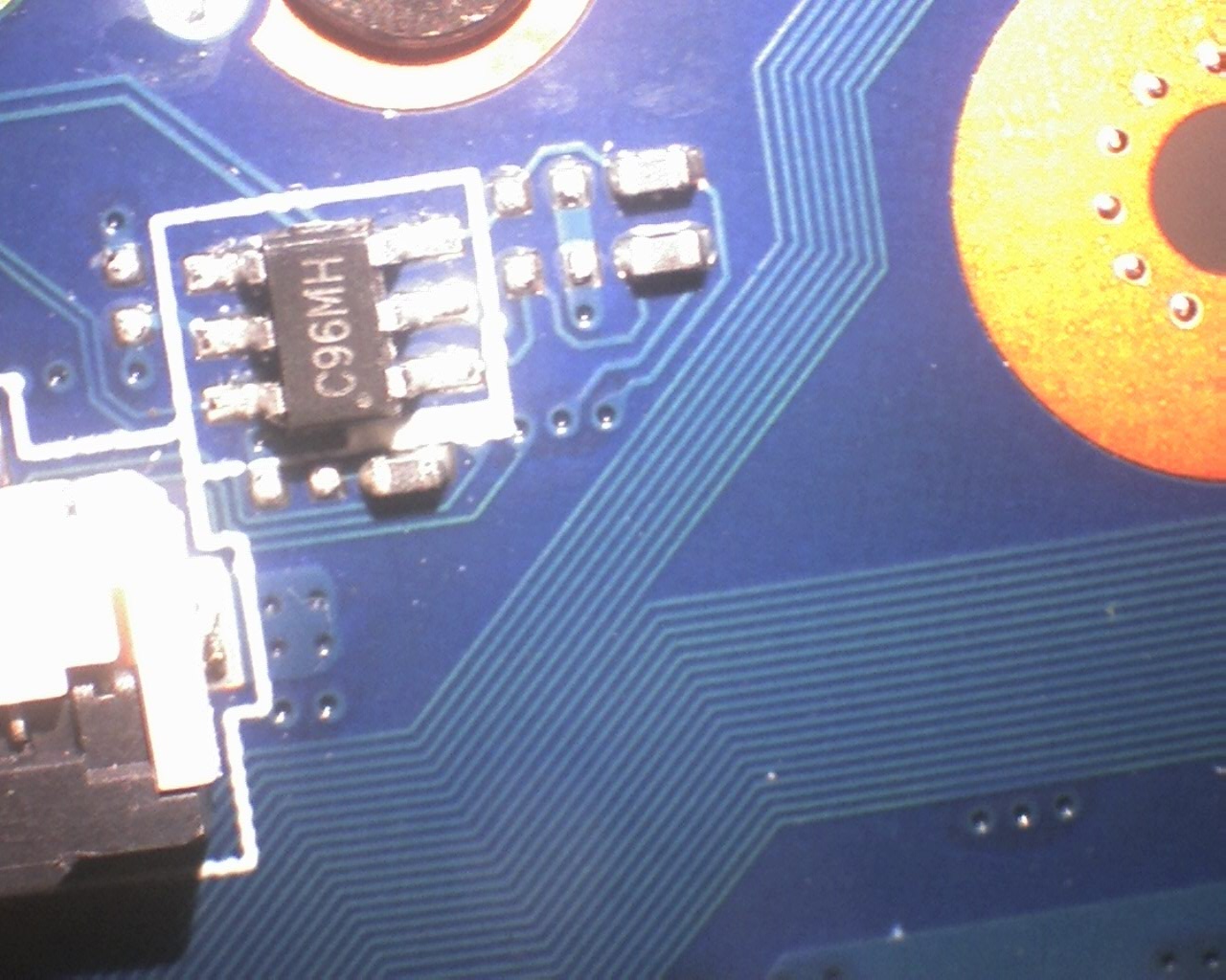 I have two of these and they have the same problem. If the battery is present and the laptop started on AC power it will go to a black (Backlit) screen with a fixed cursor, the numlock will light and then the screen will go black, as if it is going to go to the OS, but then goes back to the unblinking cursor with lighted numlock. It repeats this cycle. However, if the battery is removed and just the AC power is used the laptop boots fine. Some other information: The charge light comes on, as if the battery is being charged when the laptop is turned off with AC power in. At this stage I don't know if it is really charging the battery. How can I check this? Any ideas where I might start looking? Is there a schematic out there?