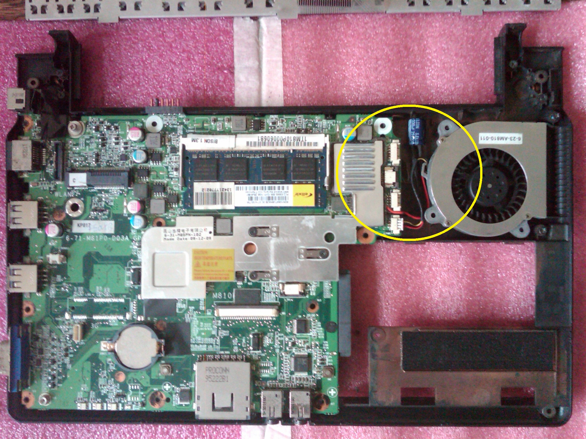 Its a NEO Basic B3230 netbook. As you can see on the picture below, the heatsink does not have any connection between the fan. How can it pull hot air out of the case if its not joined or something... The main problem is this netbook turns off because it gets really hot. Temperature rises fast, hitting 90c in just 10 mins or less.