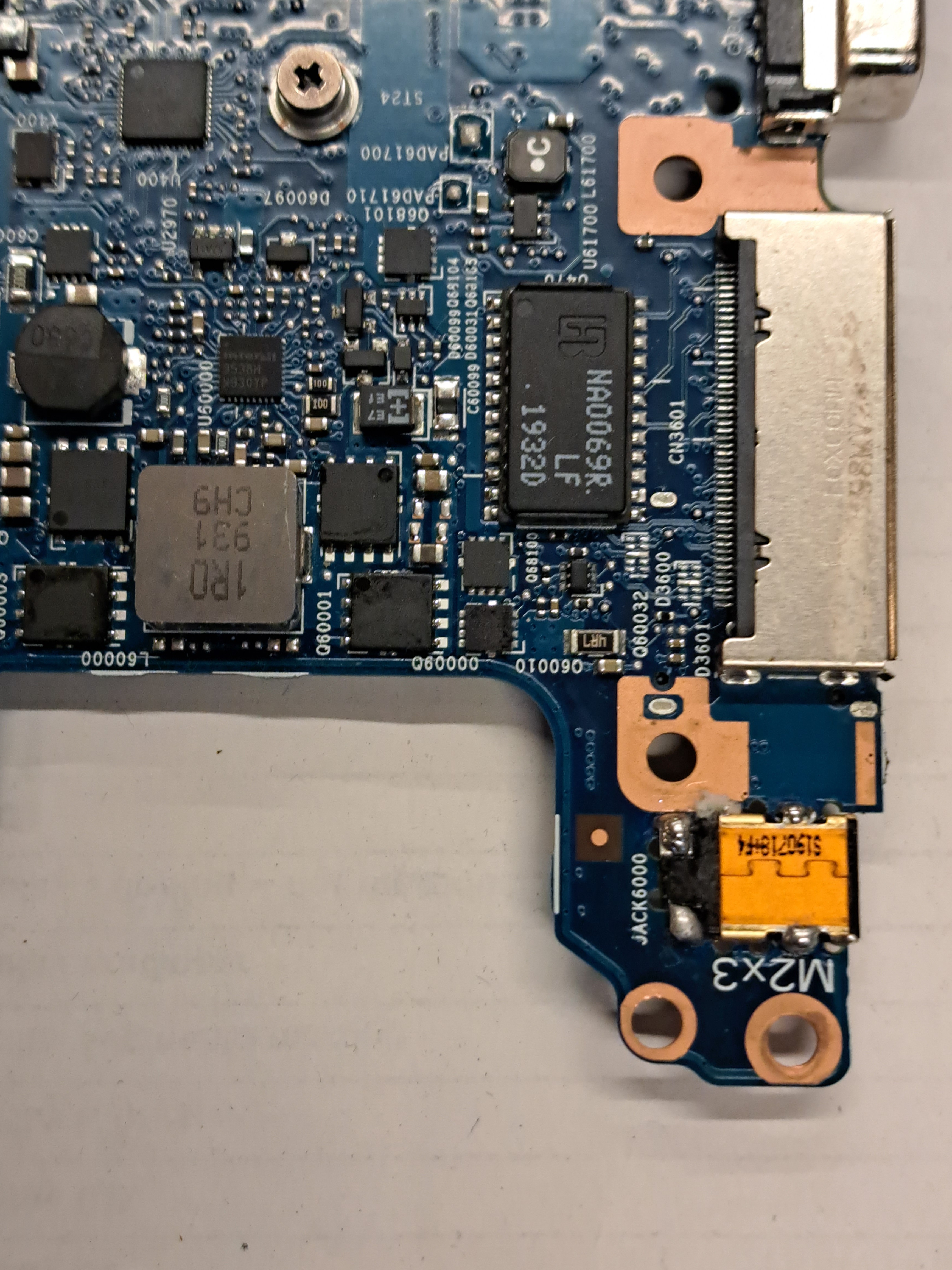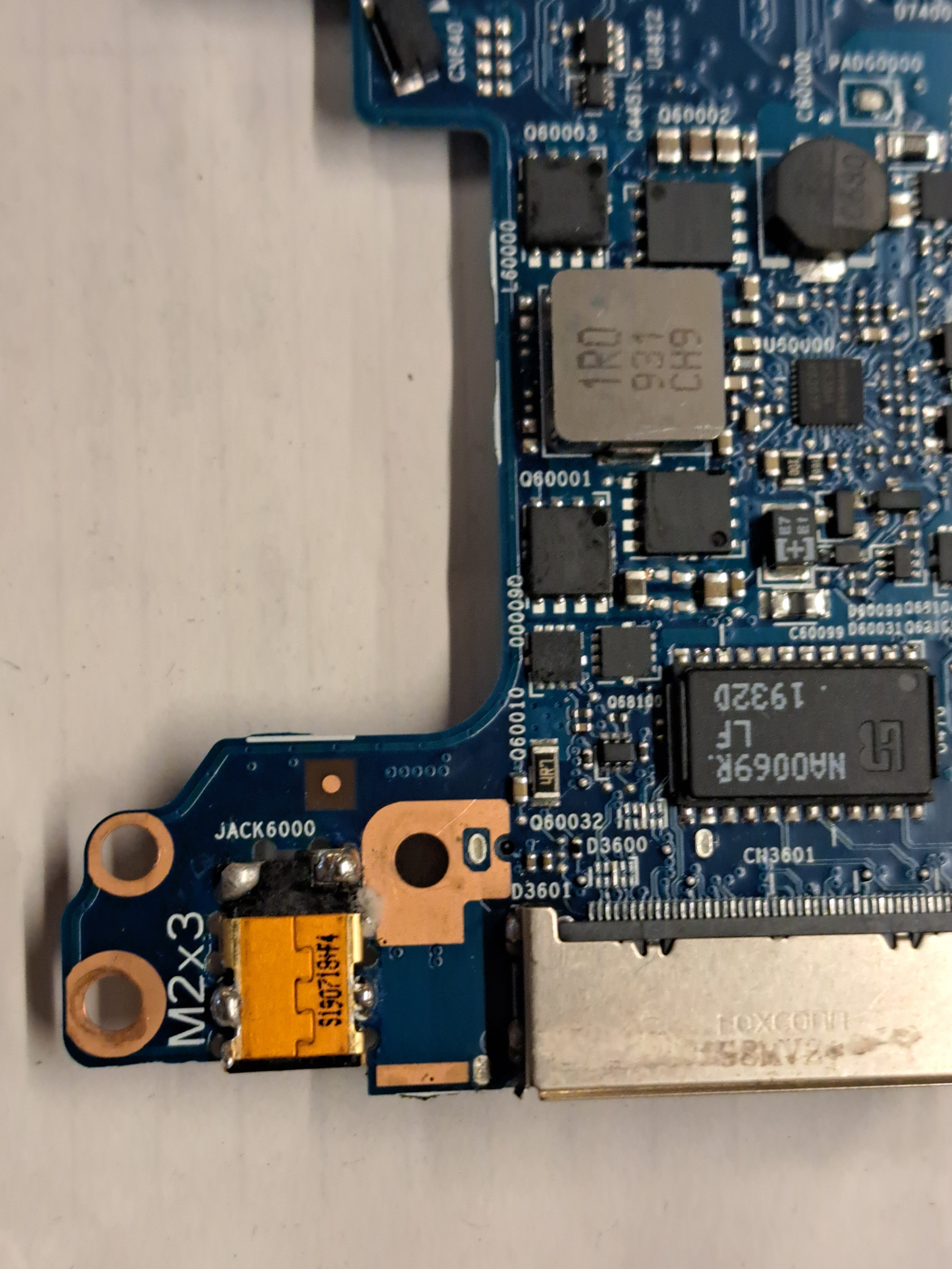 I am not sure what the center pin voltage should be. I suspect the problem to be a component on the dc input line on the motherboard but I do not have any schematics and I am not sure where to look. Can someone please help, I would greatly appreciate it