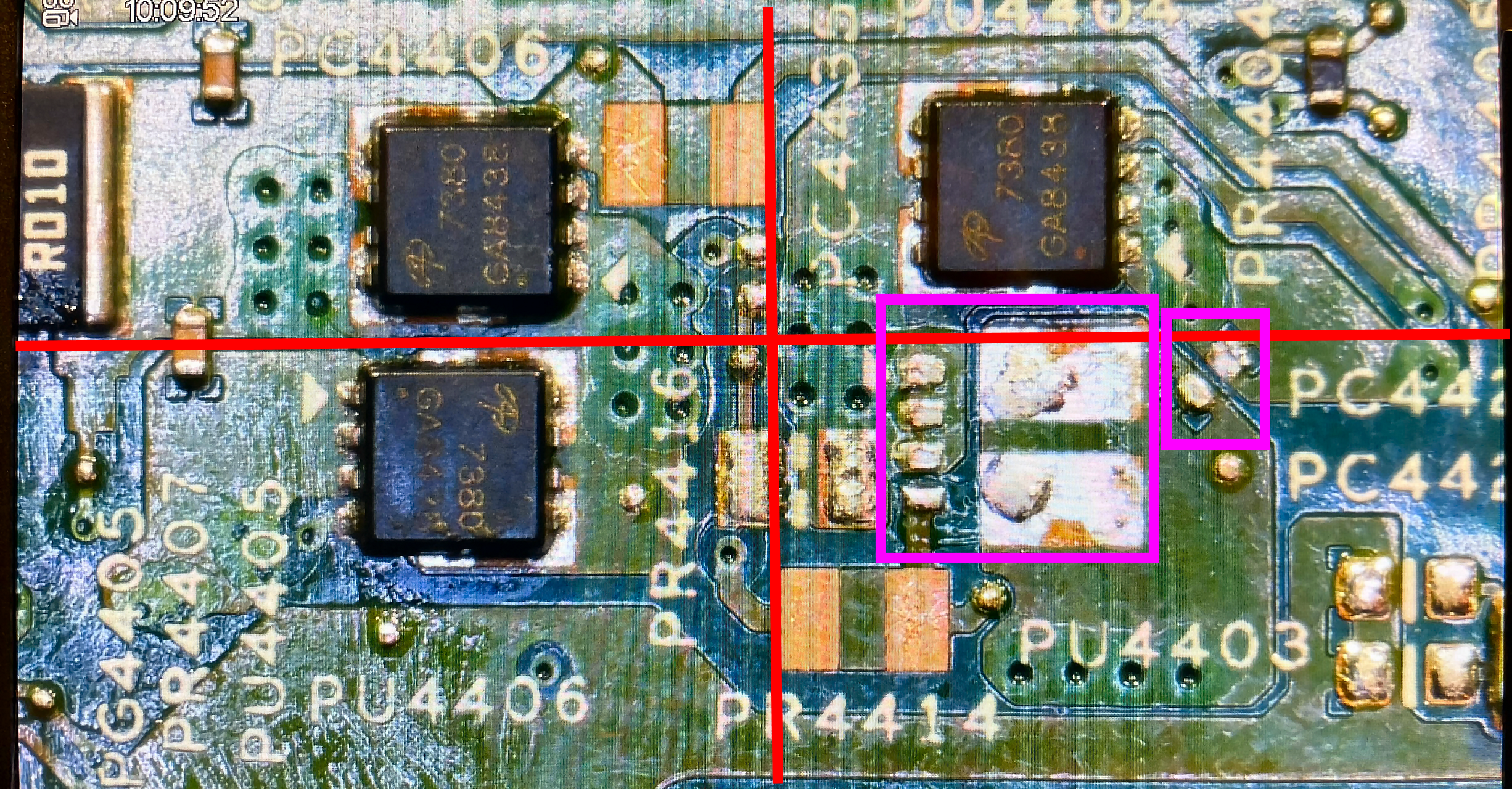 Measure the mosfet pads as well after the parts are removed. Click image for larger version  Name:	low_mosfet_readings.jpg Views:	0 Size:	184.5 KB ID:	3165746