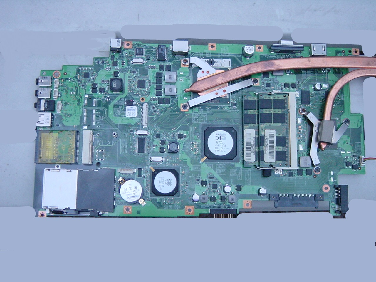 The Sis 672 gets hot and the CLK1 very hot (ICS93V8453Y) while CPU and GPU are normal.