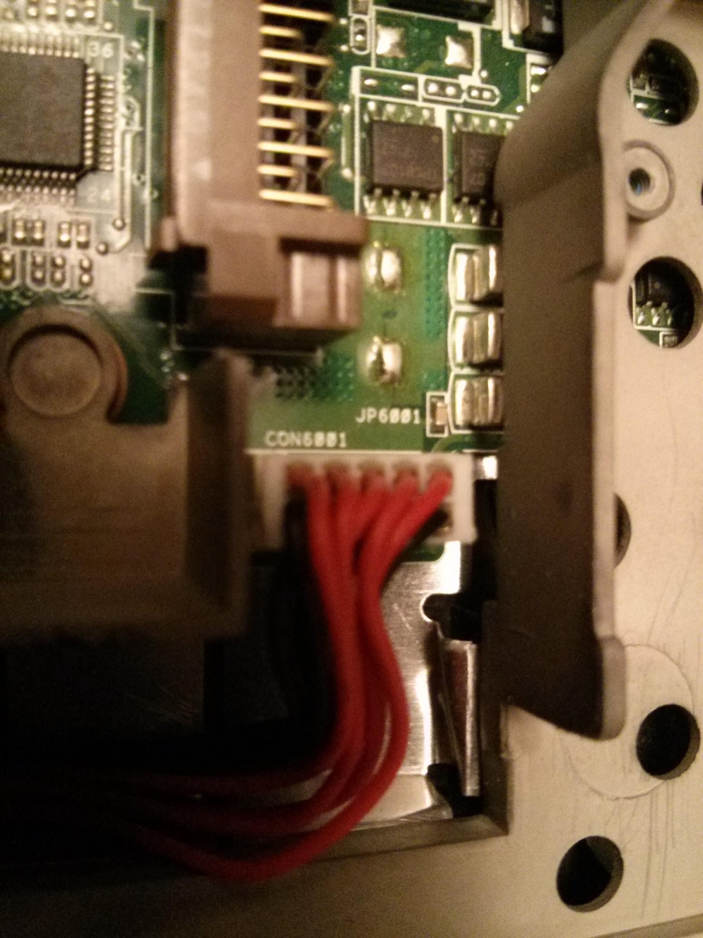 I've stripped the machine and given it a gentle but decent clean so its free from dust and I've started by looking at the DC in jack. On previous machines I've seen these soldered onto the motherboard but in this machine the DC port has a number of cables coming off of the back of it which goes down the left hand side and towards the middle at the bottom where it connects to the board.