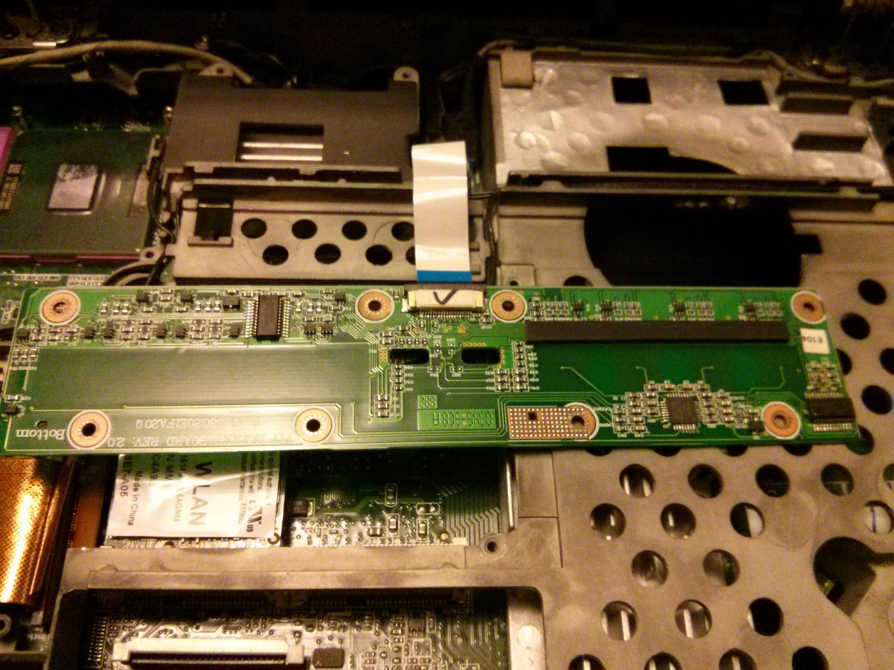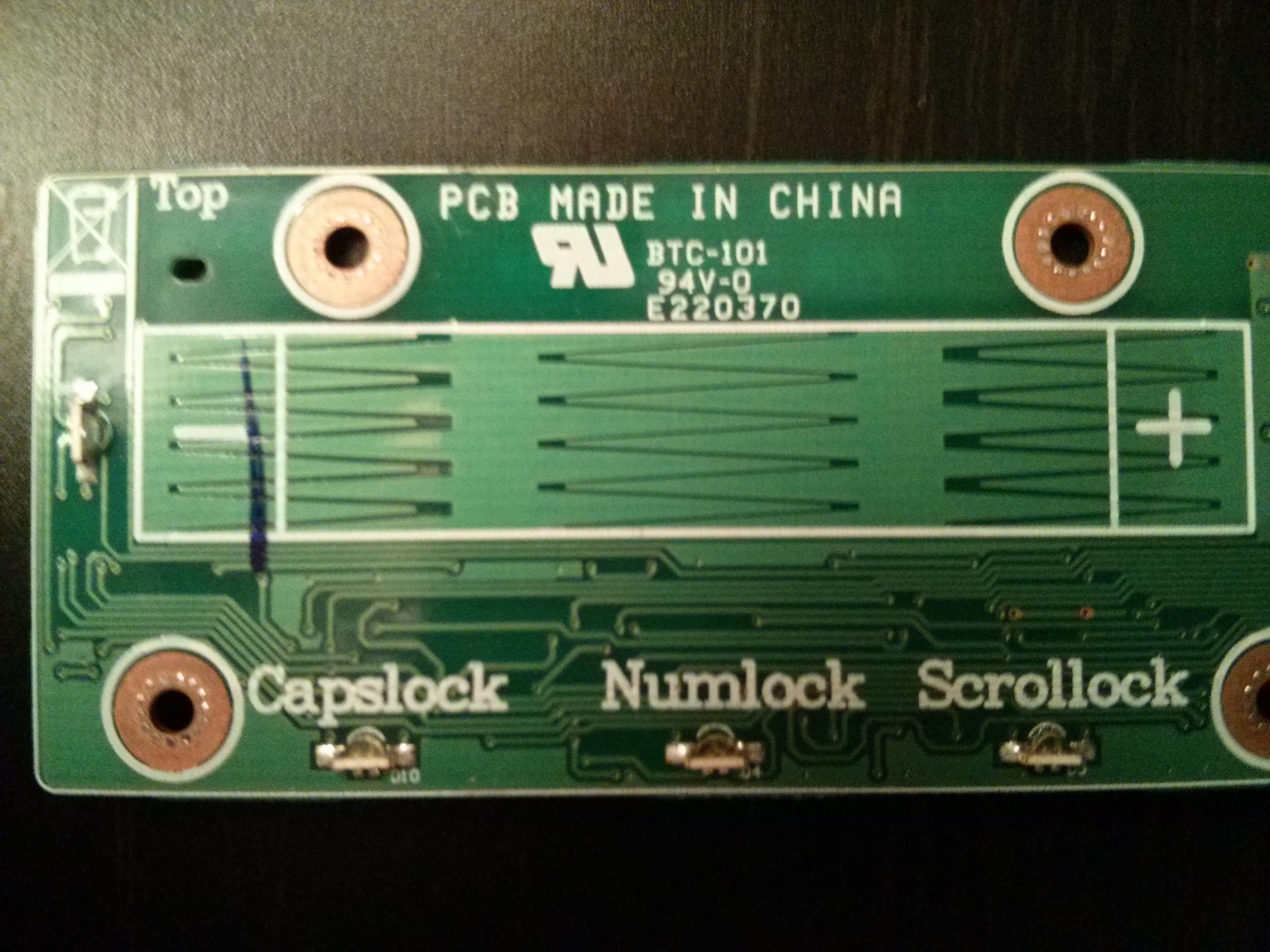 2) If nothing from point 1, I'm going to need to find some schematics of the board to find where to go next, possibly onto the board where the power button and LEDs live - P/N 08G20E1FA20 Q - Hotkey Board Rev 2.0.