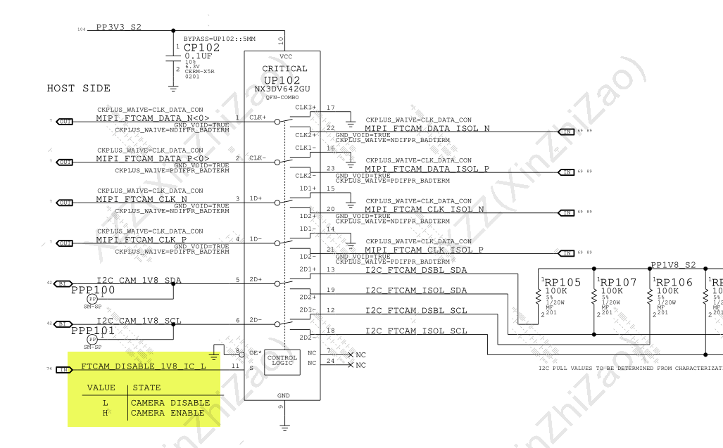 Review the voltage to ground of FTCAM_DISABLE_1V8_IC_L. Post each measurement.