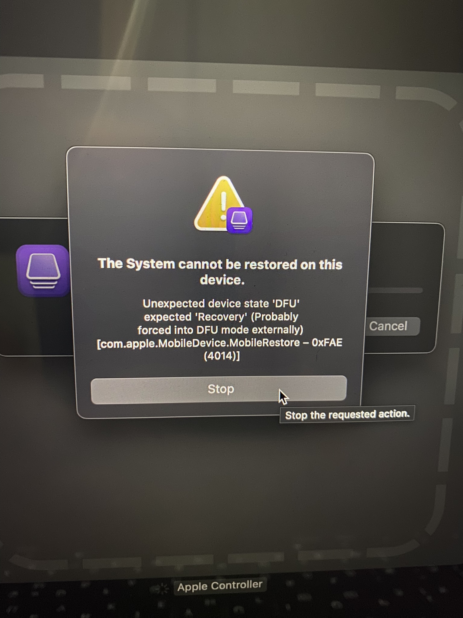 When connected to another MacBook, it constantly hangs in dfu and cannot install updates, something is wrong.