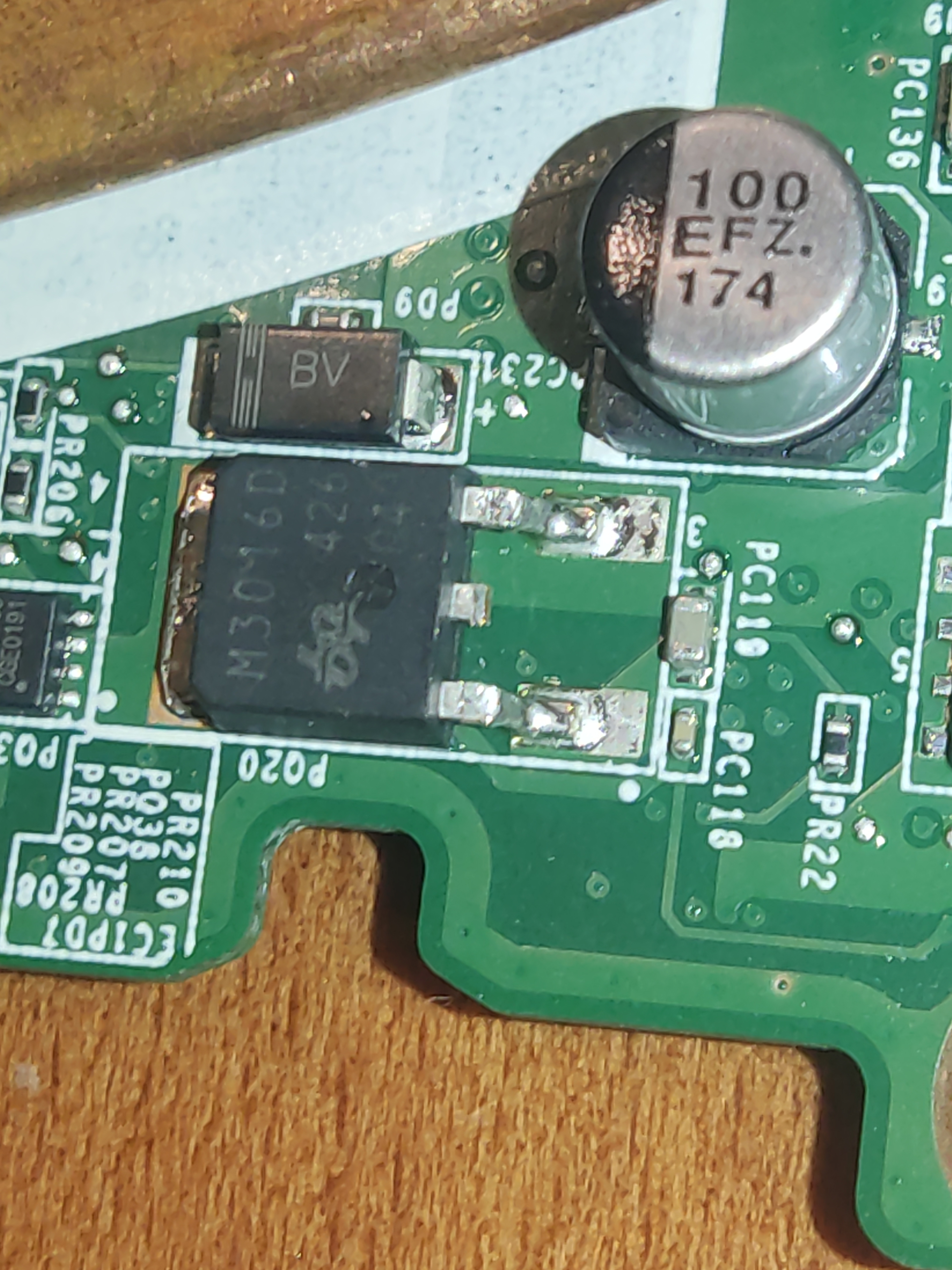 04 DC in MOSFET:19v, 24v, 19v. I can't find any more MOSFETs. This one is the only MOSFET I can see by the ps area