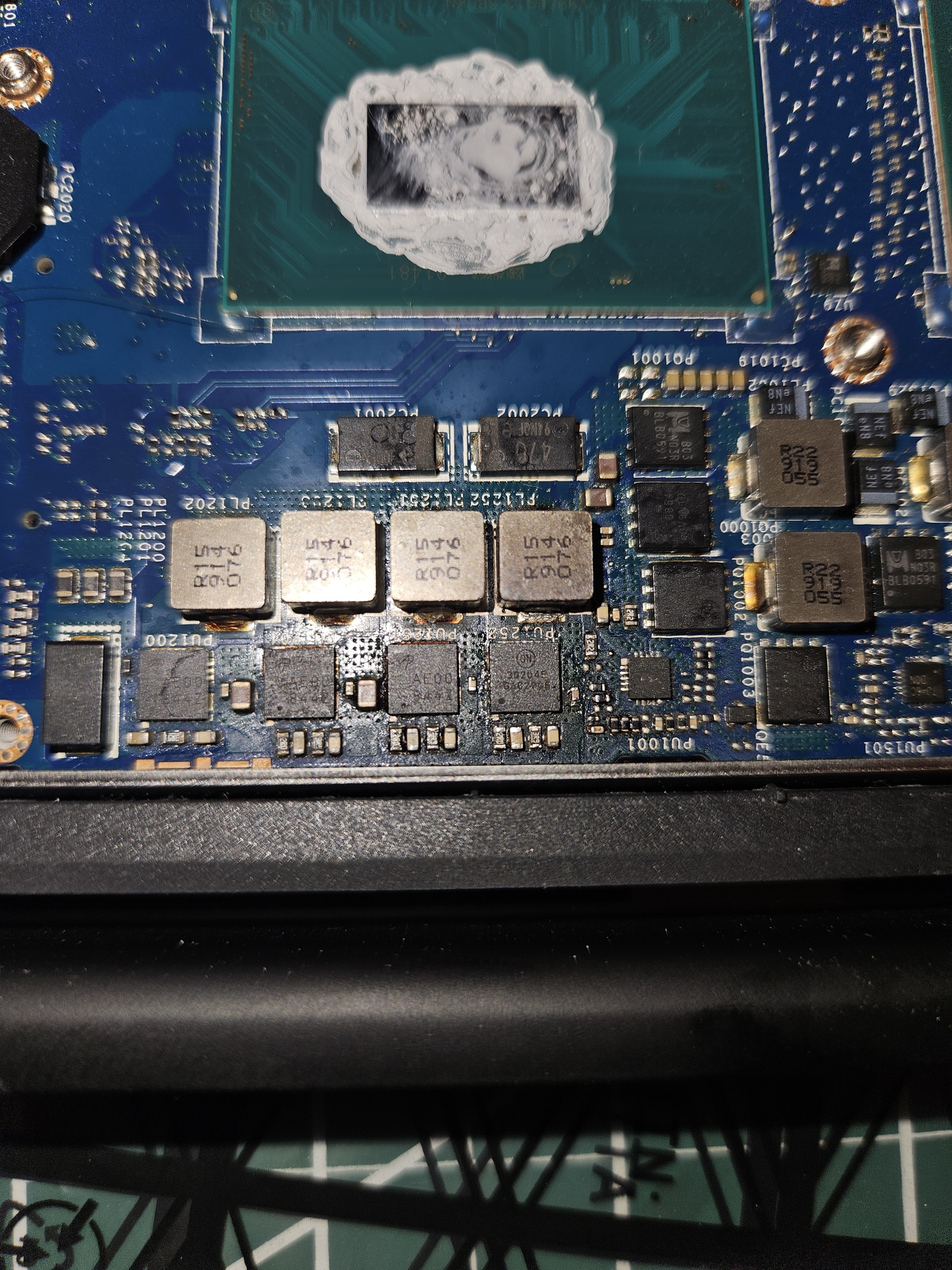 My Dell Precision 5530 turned off suddenly when I was running Matlab and wouldn't turn on, show any lights, fans, and/or any signs of activity at all. I opened the case, removed the battery and looked at the board with a thermal camera while the AC adapter was connected. I saw that PU1252 was >120C so figured the chip had died on me Got the part number off the attached schematic (see Mouser link below) and replaced the chip. After replacing the chip the board (connected to AC adapter) was able to briefly power on, spin the fans a little bit, and turn on the front led lights. However, after turning on for about 1 second it then shuts off. Also looked at it again with the thermal camera and nothing is getting hot now.