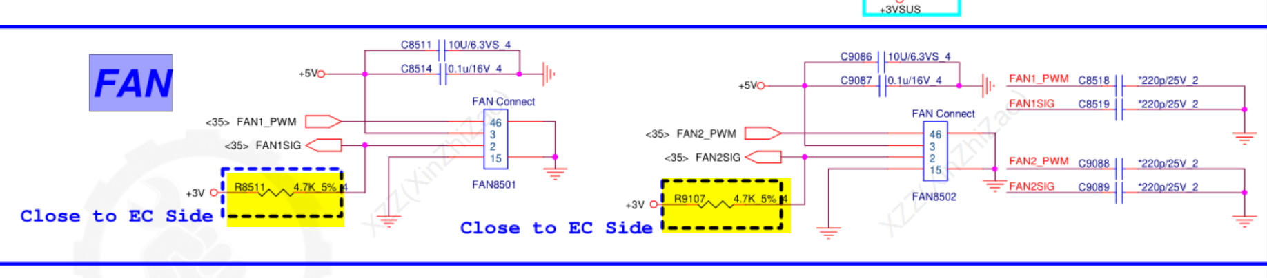 I have an HP laptop here (model and board model in title) that powers on with an error message about the fan not working properly and needs to shutdown. The thing is, the fan is spinning just fine. I disregarded the message and continued to boot into Windows and loaded up OCCT to look at temperatures and the OCCT was reporting that the CPU was very hot (98C) and climbing, so I shutdown the computer, did a CMOS reset and checked then thermal paste and heatsink for dust build-up. Paste looked good, but I cleaned it off and applied fresh paste anyway and blew out the fan from dust and checked the temps again, and OCCT still reported the CPU at upper 90C when it was just idle, so I shut it down again and started started looking at the board. There appear to be 3 components that are missing from the motherboard and I am not sure what they are because I have not found a schematic for this model and I am not sure which model would be close enough that I could use to figure out what these missing components are. I have highlighted them in red. You can tell a component was there because you can see the outline of it in the solder blob that's left on the pad. I'm assuming it's probably 2 capacitors near the MOSFETs and maybe a resistor near the fan connector but I am not sure and definitely wouldn't know their values.