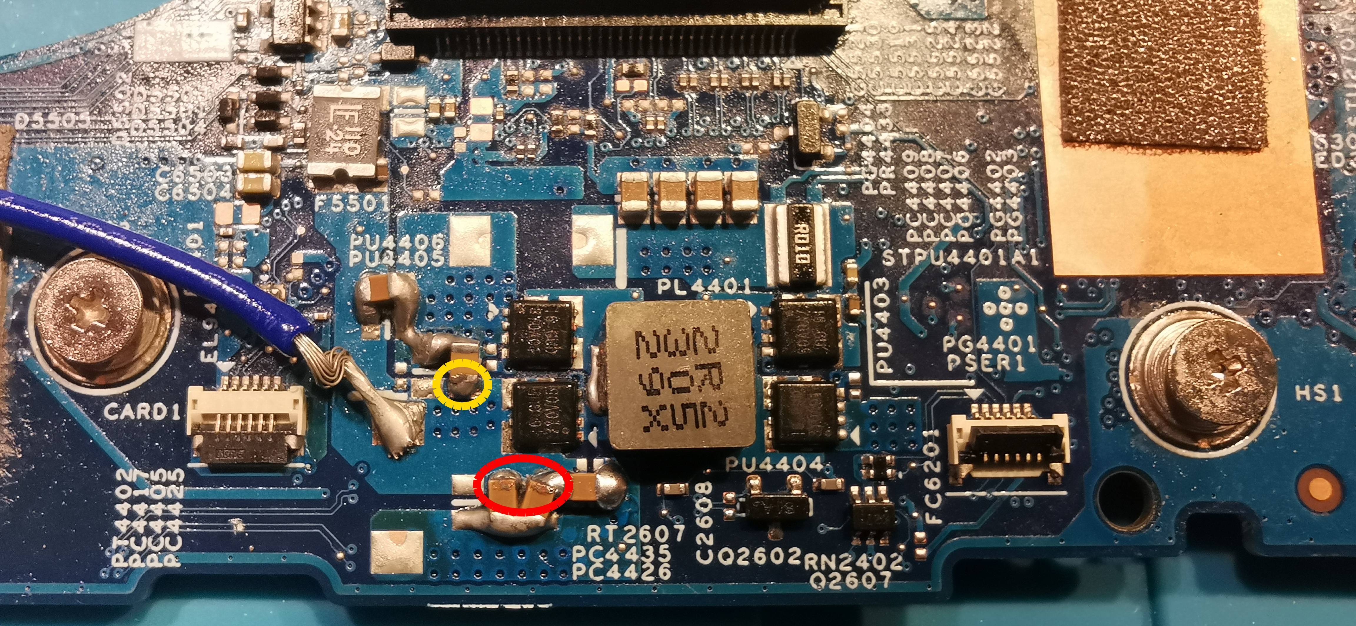 I'm a bit scared to try to insert 19V on the rail in case I've missed something, don't want to fry CPU or RAM or whatever, but I need to change something because this approach is not producing results.