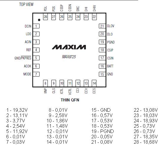 i got 19.12v on pin1 , 3.08 on pin 3 and 3.27v on pin 6. when power on state pin1 drop to 18.77v , 3.08 on pin3 then 3.27v on pin 6.