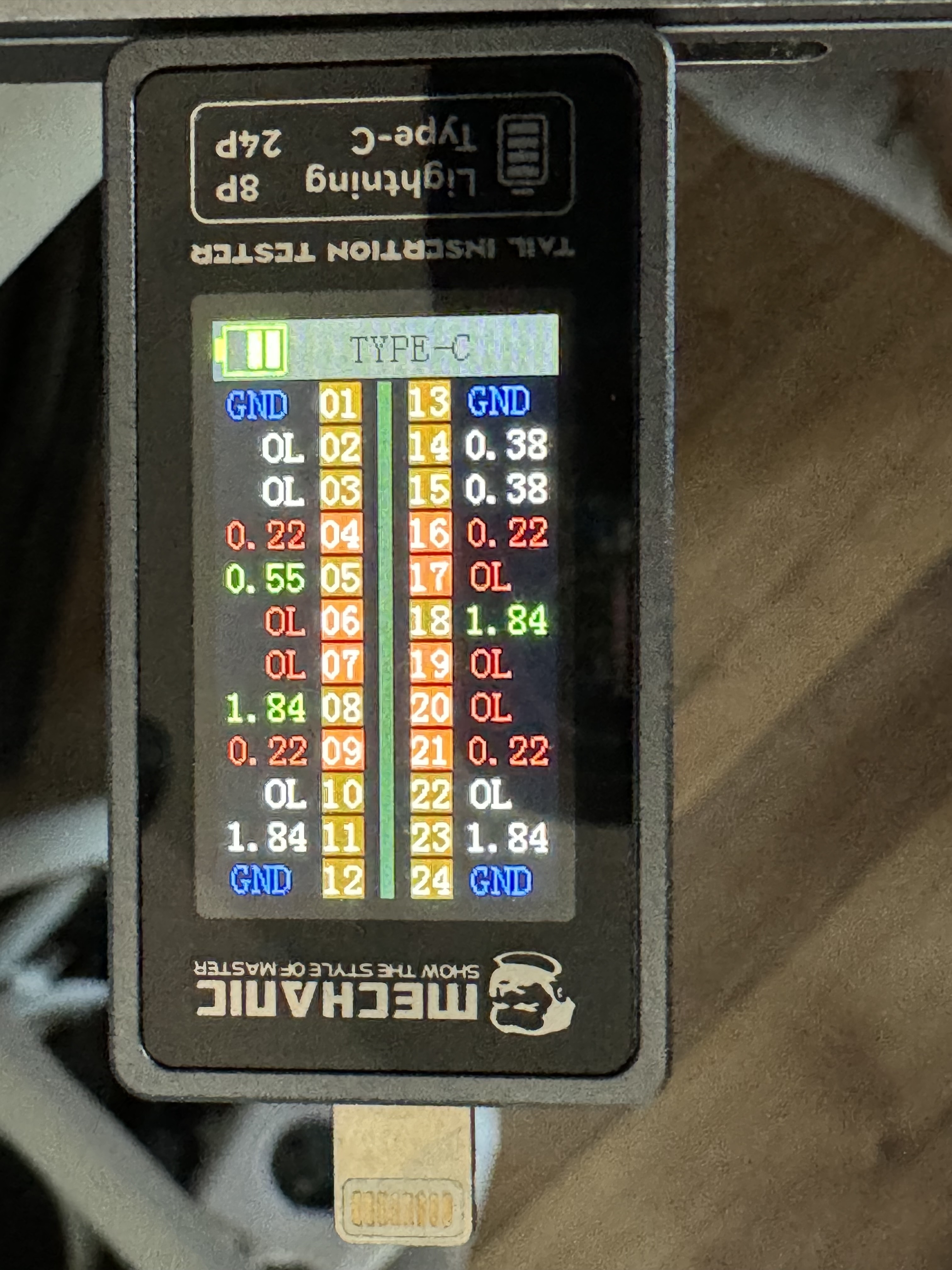 Issue is that all 4 ports are working but on one port only one side (when i rotate connector 180 degree there is nothing (ampmeter is not turned on at all) and charger (original apple) is put to protective mode, I have to unplug USB from the power brick to enable it again.