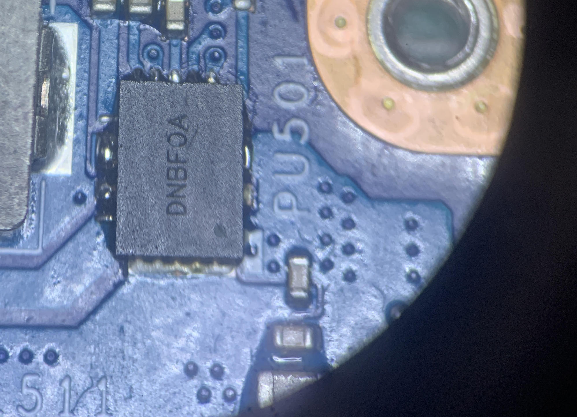 Hi gang, its a long shot, but working on Lenovo Legion Pro 7 motherboard NM-F091, and trying to identify this component near GPU with marking "eHFQH" that is burned and shorting the board. Looks like power management IC