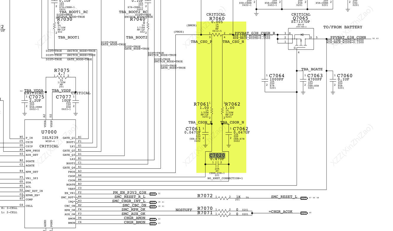 With no power, check the full path resistance of the current sense resistor on U7000 (ISL9239).