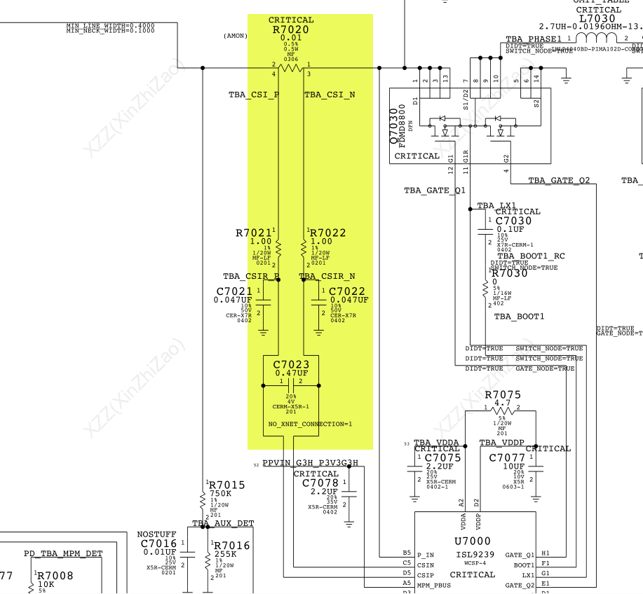 Repeat the same style of testing with C7023 = current loop sensing for the INPUT of this critical power rail.