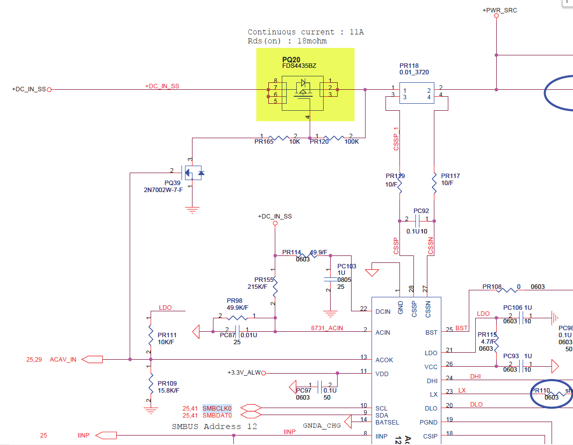 I see, is there a possibility of a PCH failure, mine got warm when I start the laptop up. The 3 beeps i mentioned indicateThe measurements on PQ20 are ok since this is a P-channel mosfet. With a P-channel mosfet, the GATE voltage (pin # 4) must be LOWER than the voltages being passed between source / drain pins. The voltage divider built by the 2 resistors is enabled and this mosfet is operating correctly to pass through the 19v from the power adapter.