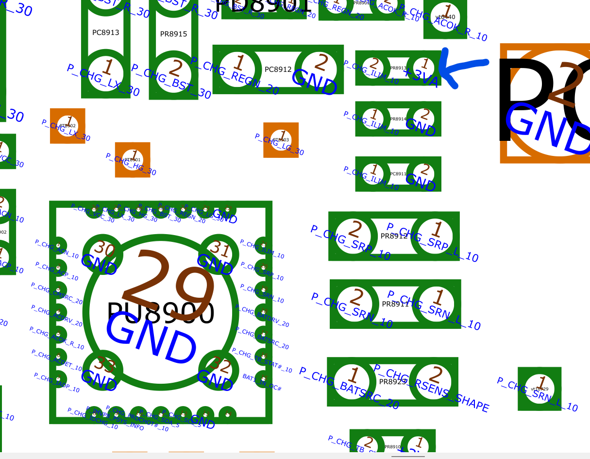 Hi mon2, I was out of town for the summer and had to leave this repair sitting on my desk for a few months. I'm back now and I've tied 3.3V to ILIM by shorting PR8913. The battery is still not charging when the charger is plugged, and the charging coil on the motherboard seems to be sitting at the current battery voltage and not increasing as expected to start charging the battery.