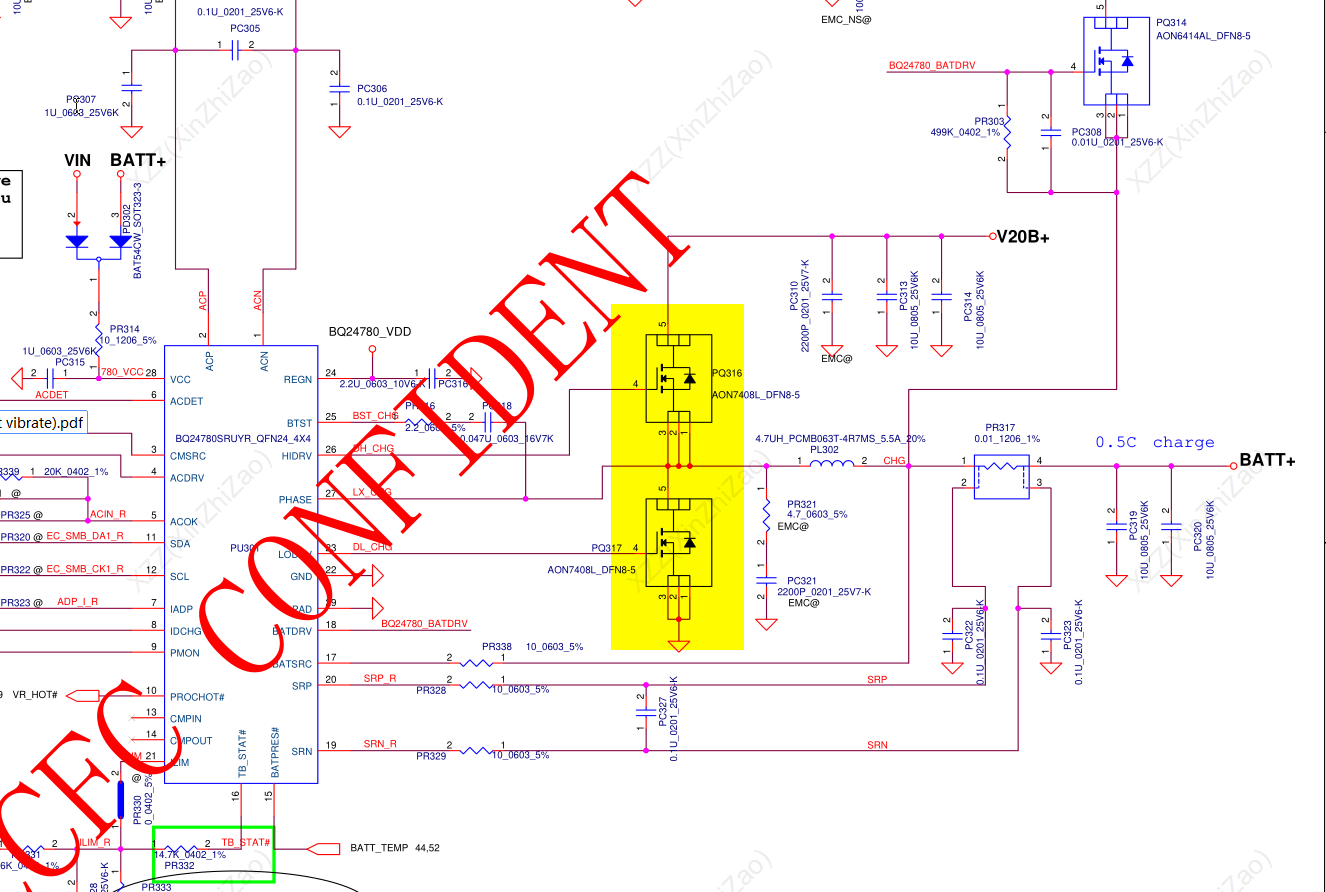 1. Laptop will not power up without main battery connected (missing 3.3v line)- measuring on the 3.3v coil i can see 0v but for split second it jumps to 3.3v and drops again.
