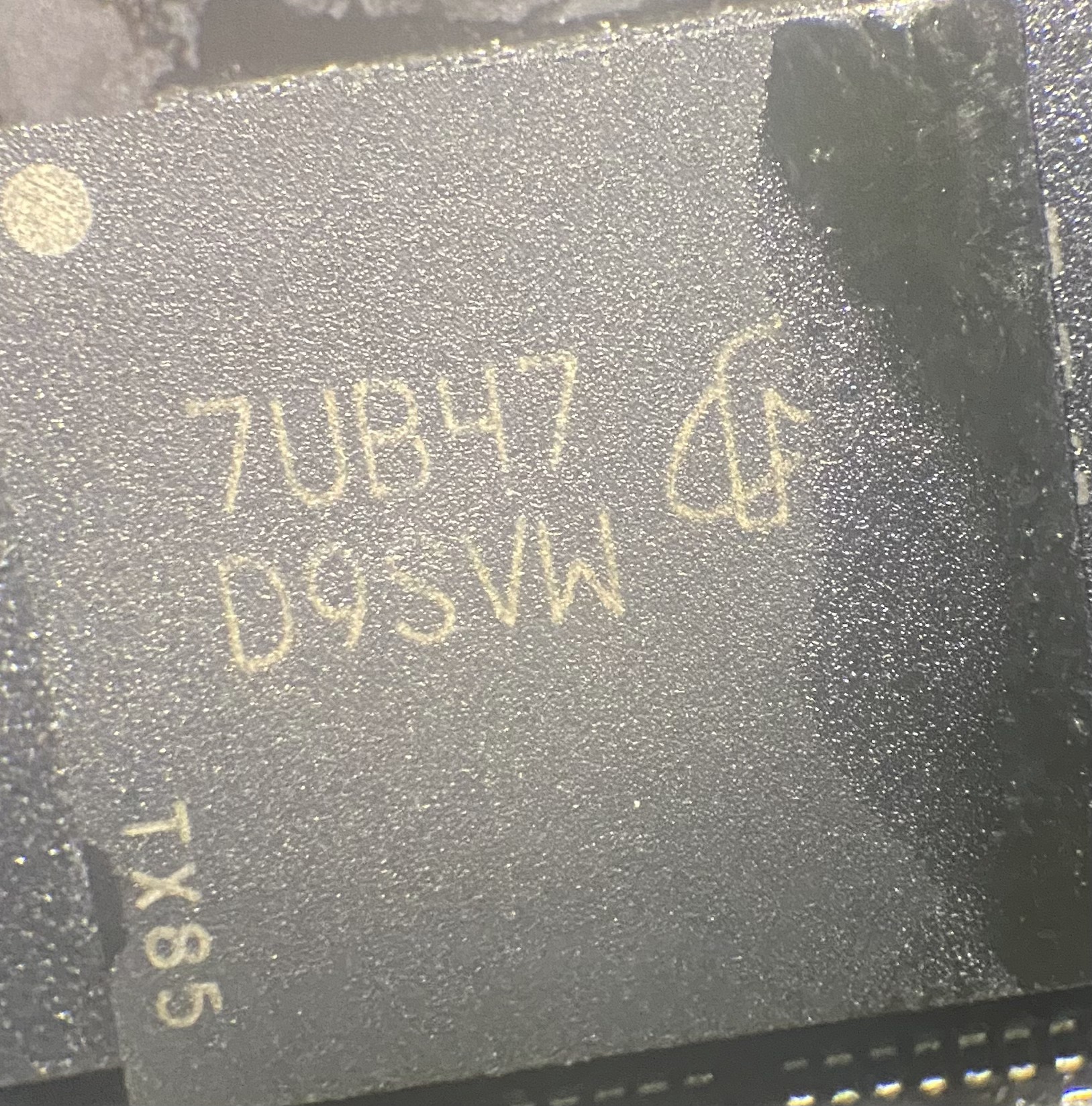 board after filling with liquid! which is why the u2300 burned out. Since I have no idea how the DDR is selected, I removed all 4 modules from a similar board and placed them on this board!
