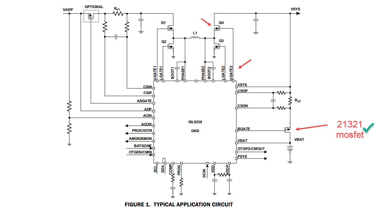 Ok so UGATE2 of the charger IC goes to the MOSFET in the picture. I'm a little confused by it as it does not have a 1234 drain. Hopefully I've measured right but I'm unsure of the different layout of pins on this chip compared to your traditional MOSFET.