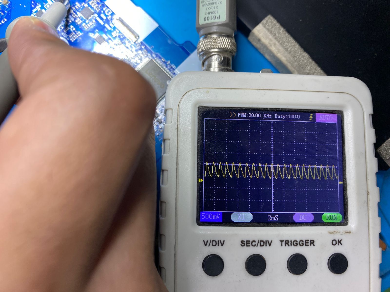 Rectify the voltages on pin 23 gate of PQ5407 and it is still 0.5 with battery+charger, rectify the battery and charger alone and it is still 0V.
