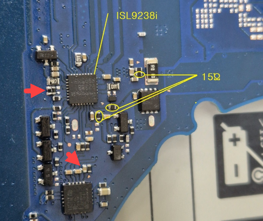 Initially, the symptom was that charging was not possible and after replacing the ISL9238 chip, the power DC was not recognized.