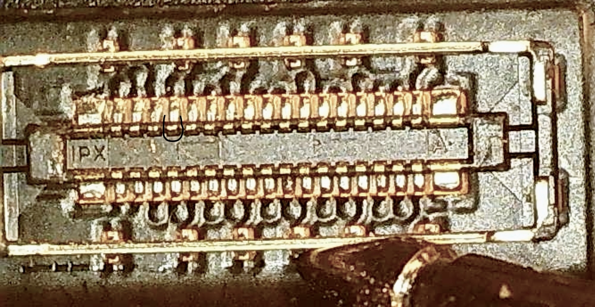 see picture 1 - this pin (marked black line) is shorted to ground on seller's flex