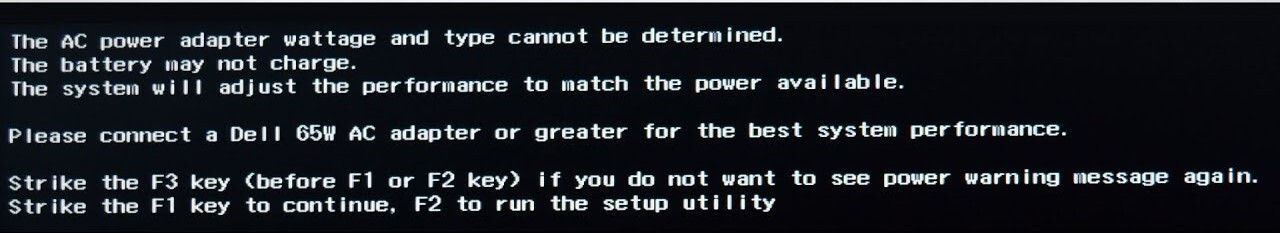 That picture shows the adapter was not recognized. Was it taken with the HP charger ? You need a original Dell one, with the PSID circuit working for the machine to detect and accept the charger.