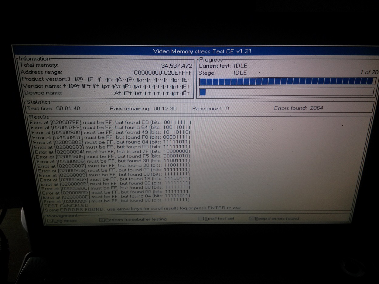 I've reballed the N11P-GV1-A3 Nvidia chip and when I run the video stress test I get these results (see file attached) . The same I had before reballing.