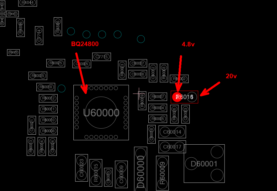 Thx for reply mon2. Ok I'll start with a reflow. The area is not oxidized and the contacts are good. How do you explain the 4.3 volts if the resistance is disconnected? the bordview clearly says that the 20 volts once exceeded the 2 initial mosfets must stop if there is no resistor. There are no other connections. Do you think 4 volts come from bq??