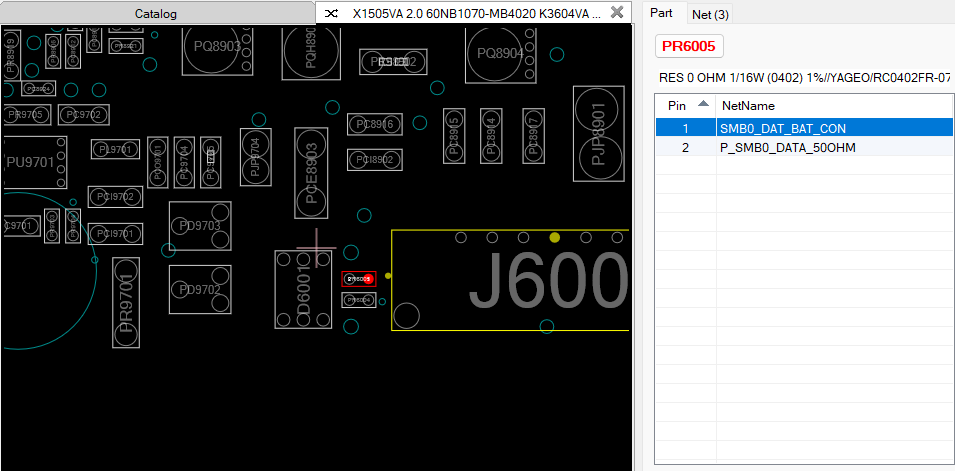 Confirm it. Moving forward, highlight the same SMBUS lines and you should find a local ESD protection device. Often they are used to shunt transient events to prevent damage. Suggest to flux and remove the ESD transient protection device (usually will be a 3 pin part in a SOT-23 package or SC-70 package). Then test the resistance and voltage to ground again after this part is removed off the board.