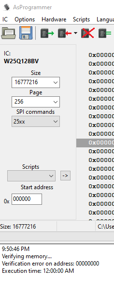 I tried reseating the clip, using a different USB port, using a USB 3.0 port instead of 2.0, and unprotecting the IC, all of them yielding the same error message. I then tried using CH341a Programmer Version 1.18 and 1.29 which would either give me the error "Write Operation Timed Out" or "Chip Main Memory with the contents are in disagreement​"