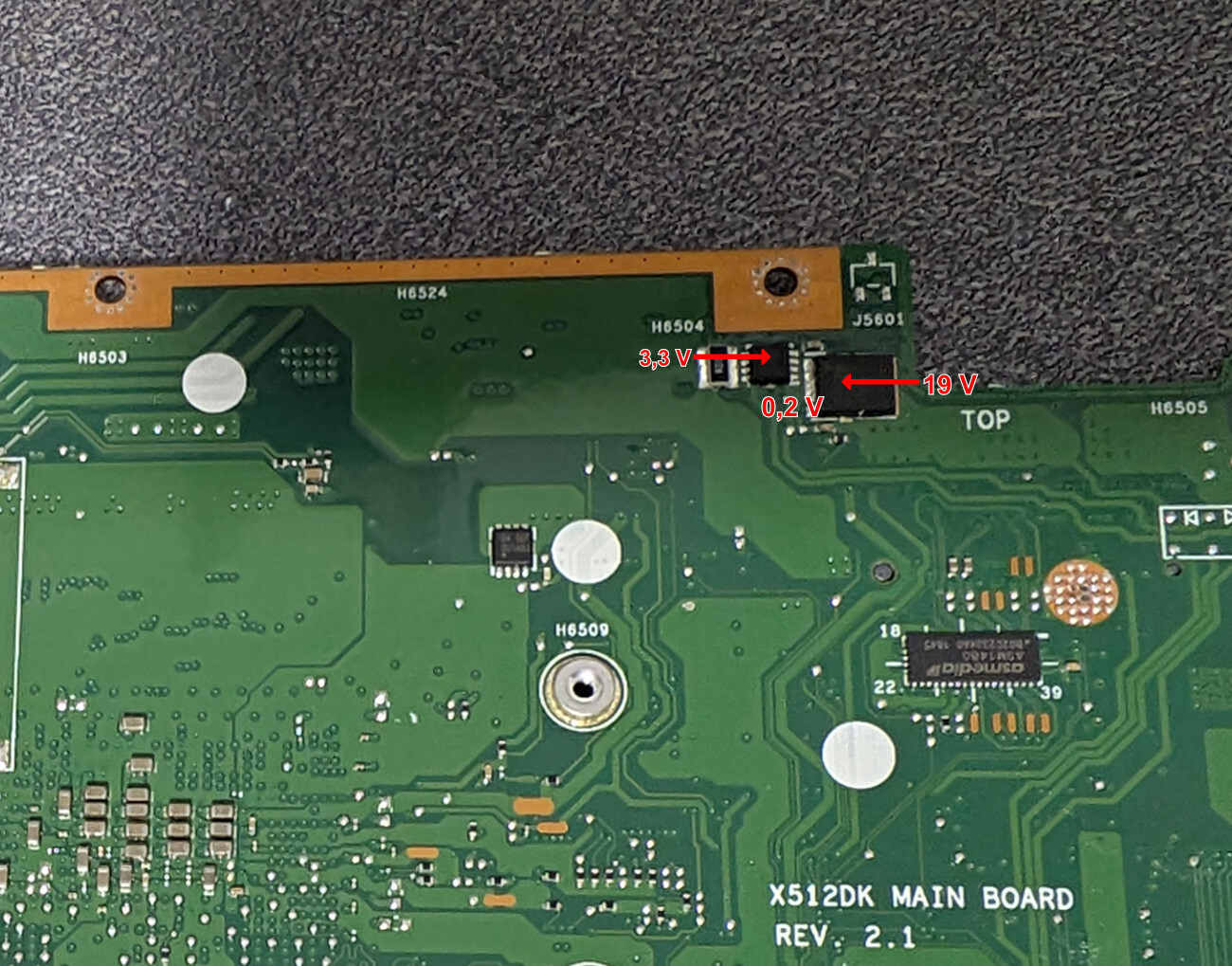 The charger is good, as the laptop recieves the 19v at the power plug ( the 19v stops at the first MOSFET).